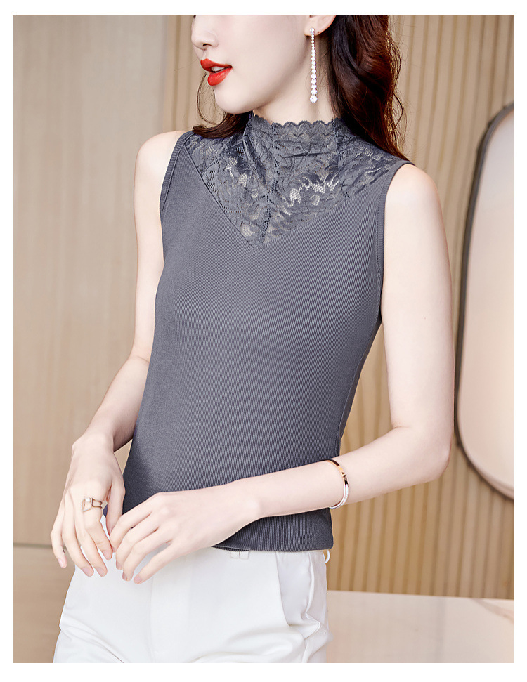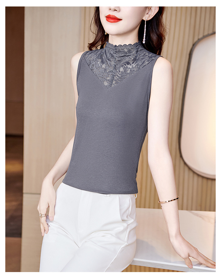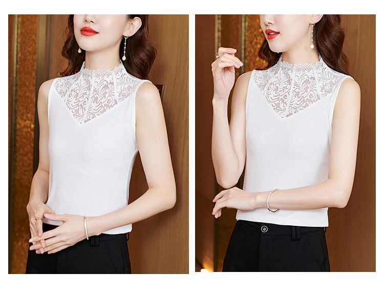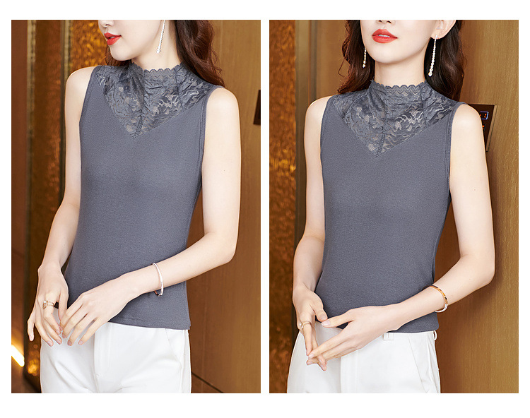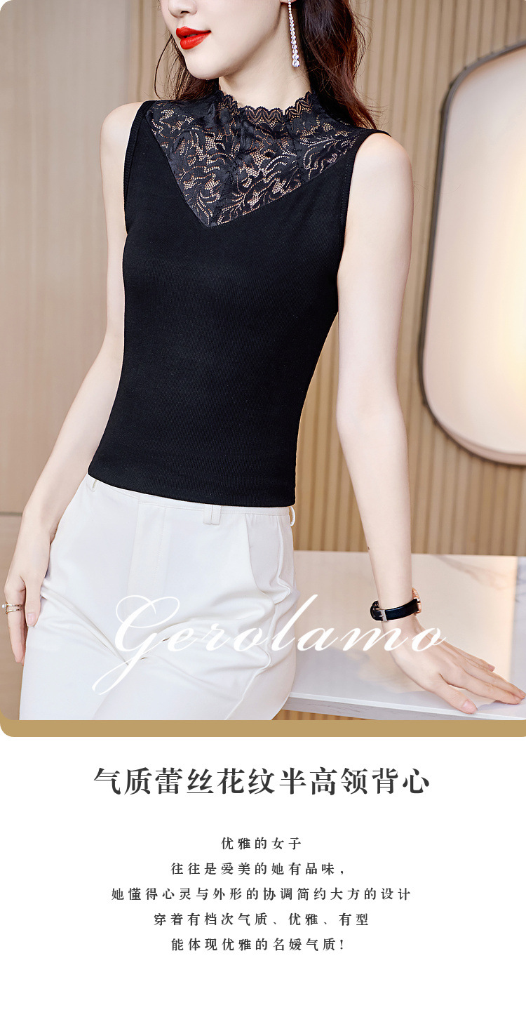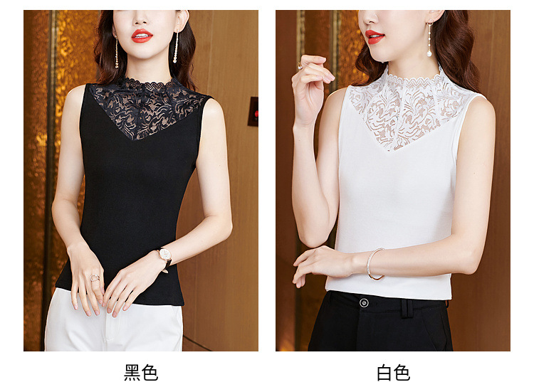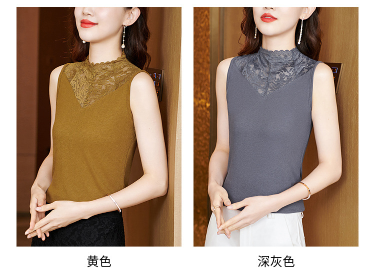 2023 새로운 심플 풀오버 솔리드 컬러 모달 슬림핏 베이스 조끼 여성용 하프 하이 칼라 레이스 베이스 셔츠스토어 가기