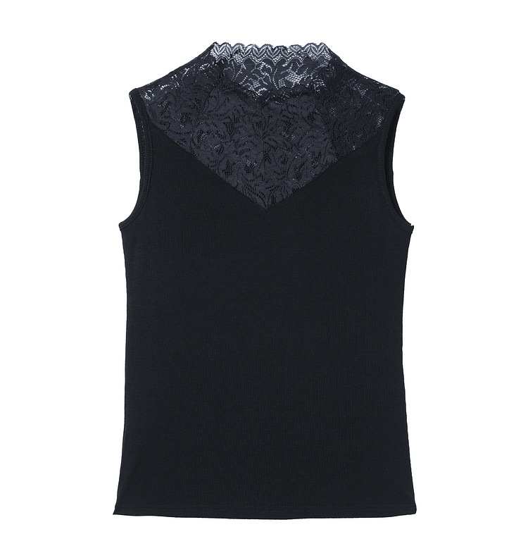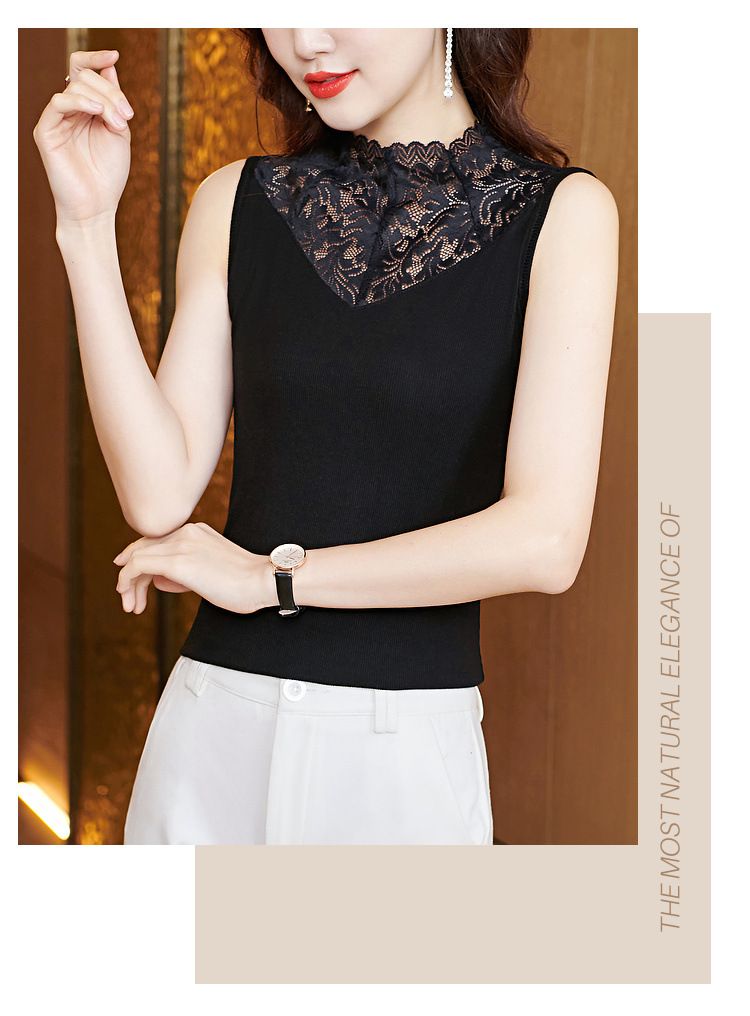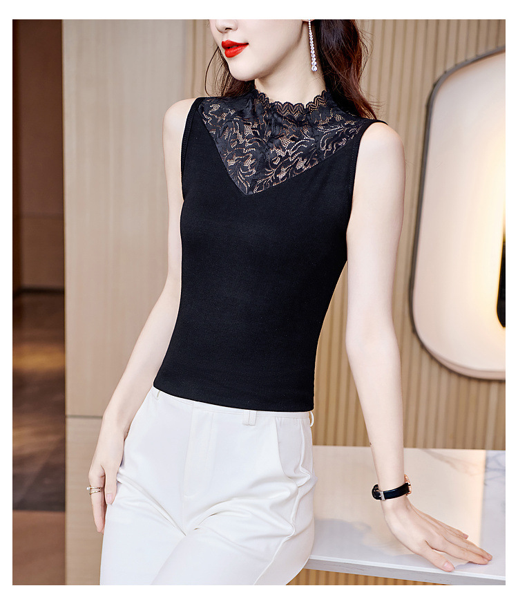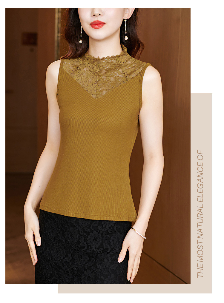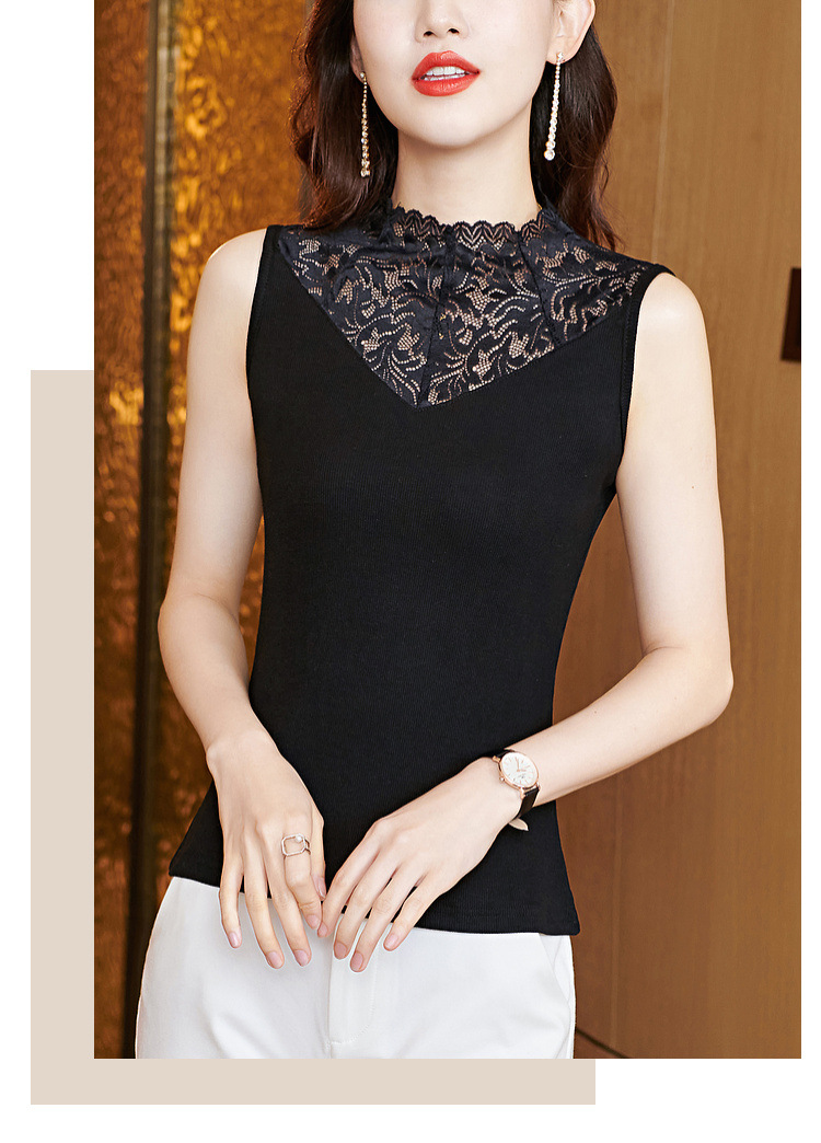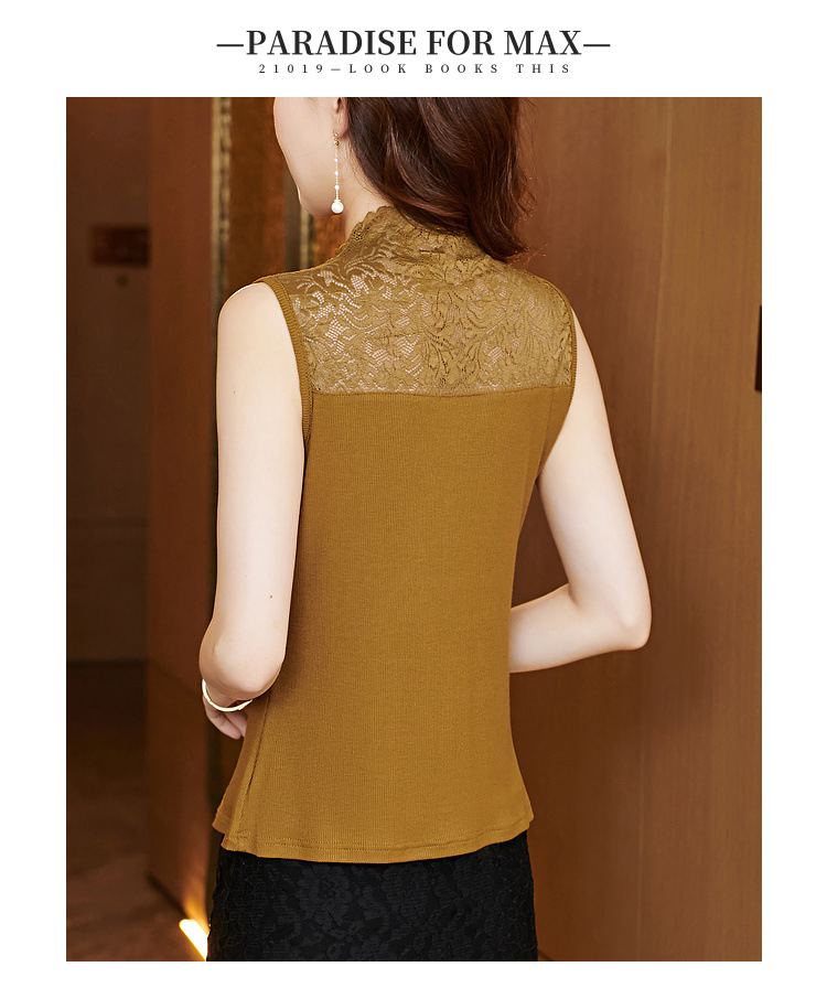 2023 새로운 심플 풀오버 솔리드 컬러 모달 슬림핏 베이스 조끼 여성용 하프 하이 칼라 레이스 베이스 셔츠스토어 가기