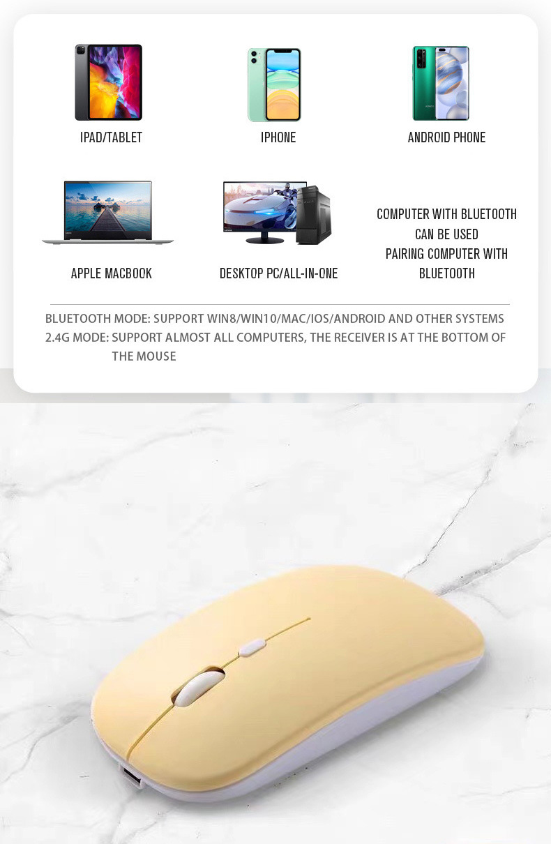 • 음소거 2.4g + 블루투스 듀얼 모드 발광 버전 옐로우