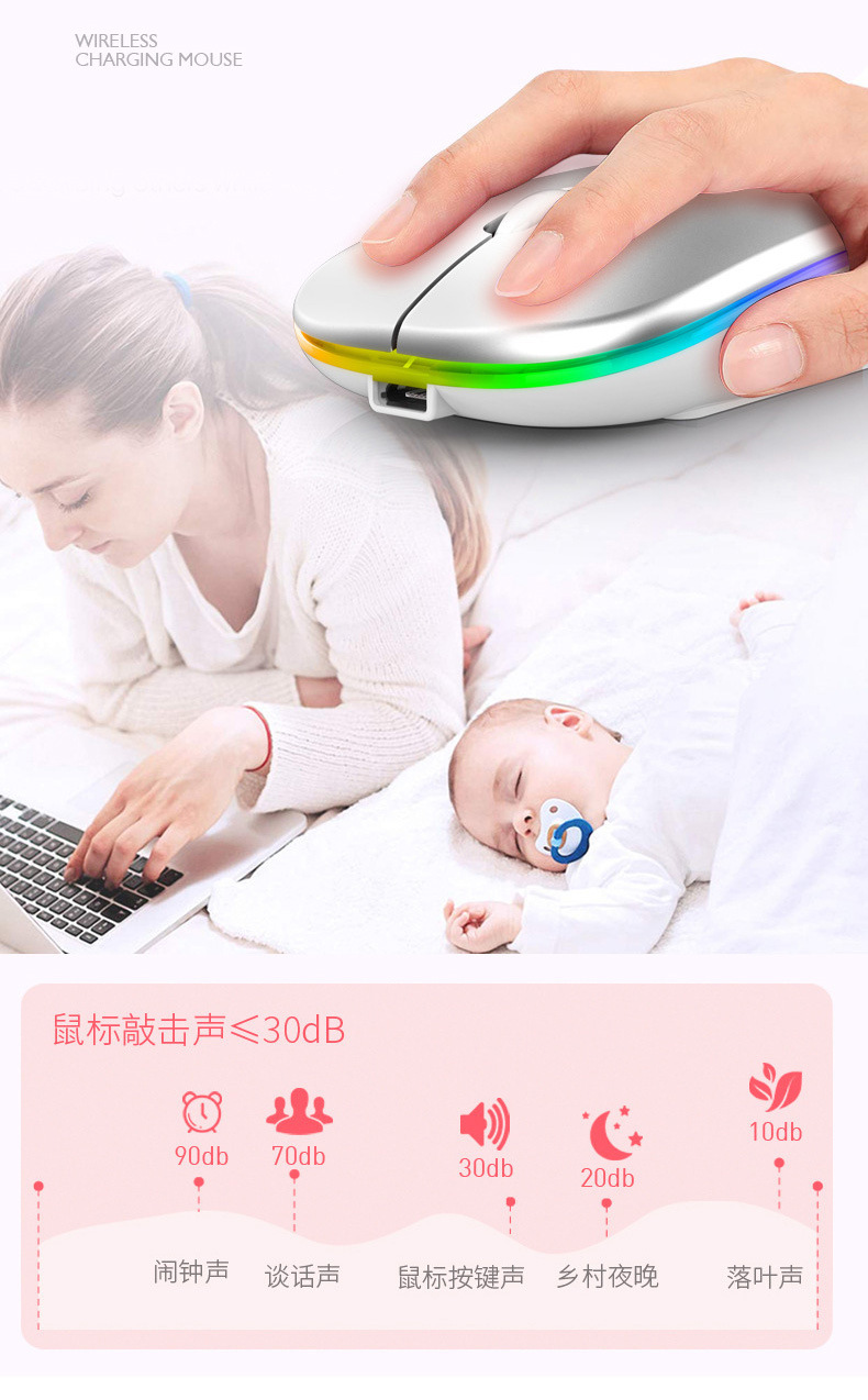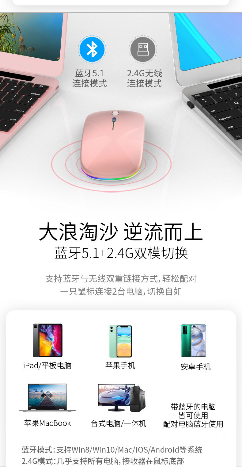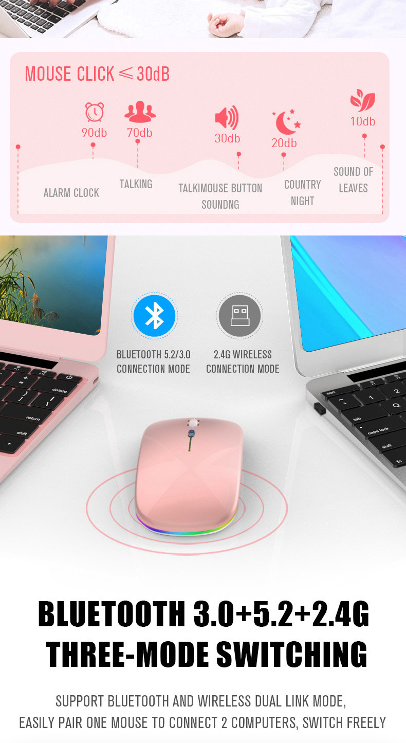 • 음소거 2.4g + 블루투스 듀얼 모드 발광 버전 핑크