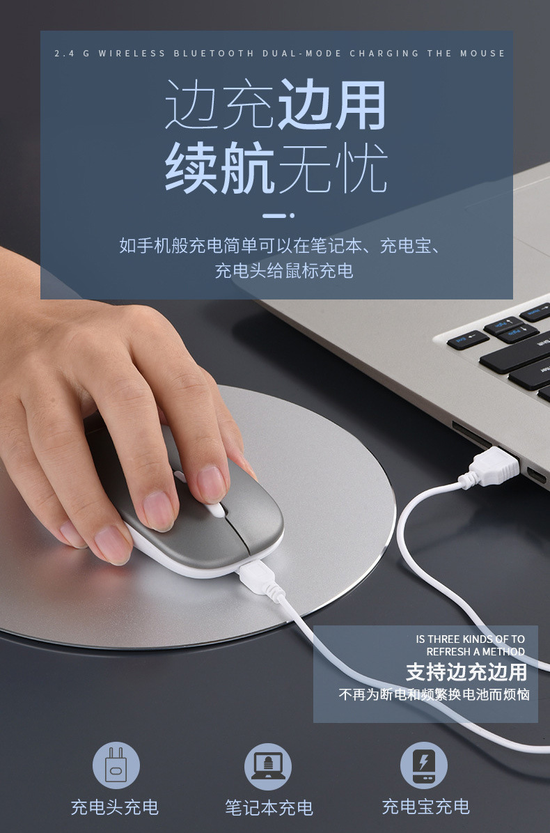 핫 세일 새로운 무선 마우스 충전식 자동 노트북 데스크탑 멀티 디바이스 호환 듀얼 모드 블루투스 마우스