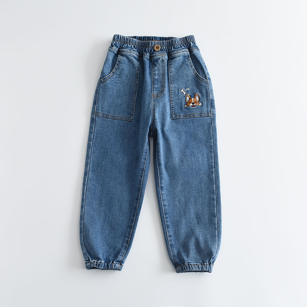 2023春季新款 口袋小狗绣花 男童束腿休闲牛仔长裤