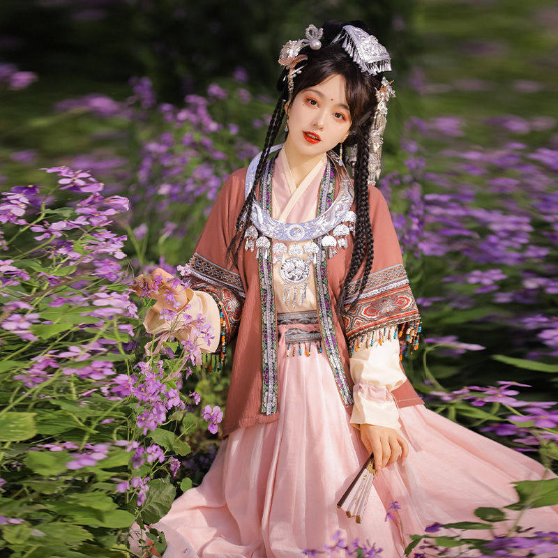 Han Yannujiao 성인 여성 Hanfu 여성 노래 제작 하프 슬리브 플리츠 스커트 여성 에스닉 스타일 봄과 여름스토어 가기