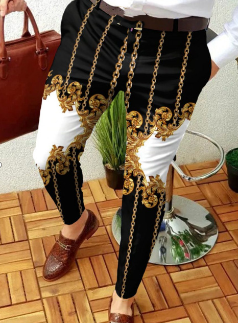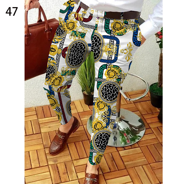 대외 무역 봄 새로운 중간 허리 캐주얼 바지 남성 바지 디지털 인쇄 슬림 핏 바지 남성 스트레이트 다리 바지스토어 가기