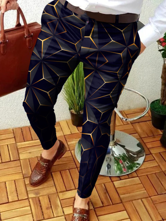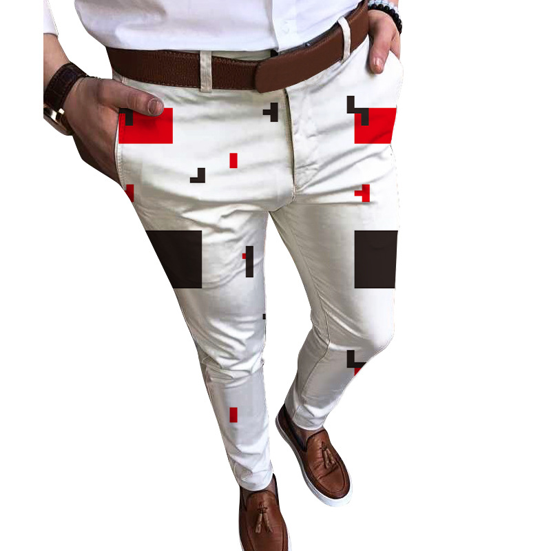 대외 무역 봄 새로운 중간 허리 캐주얼 바지 남성 바지 디지털 인쇄 슬림 핏 바지 남성 스트레이트 다리 바지