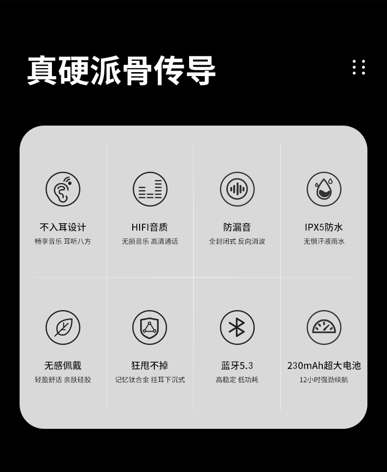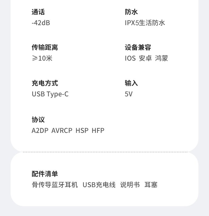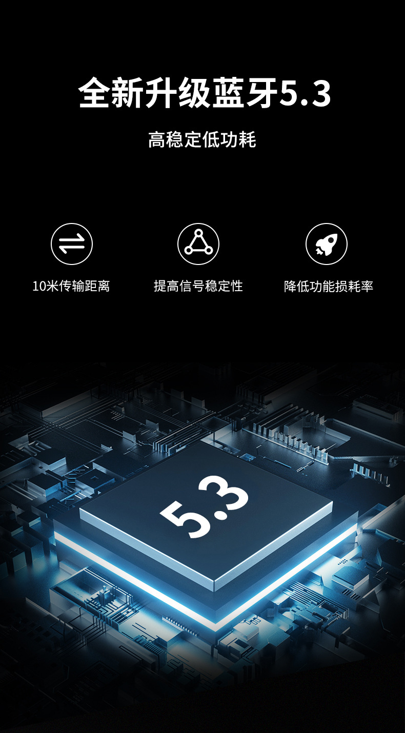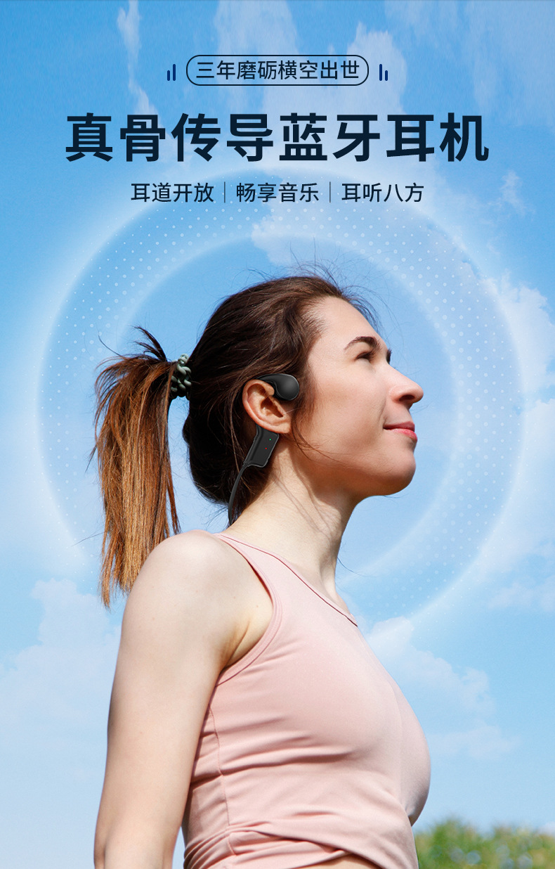 三个物理按键:电源键,“+”,“-”,高保真立体声,满足运动时的高品质音乐和通话需求。
