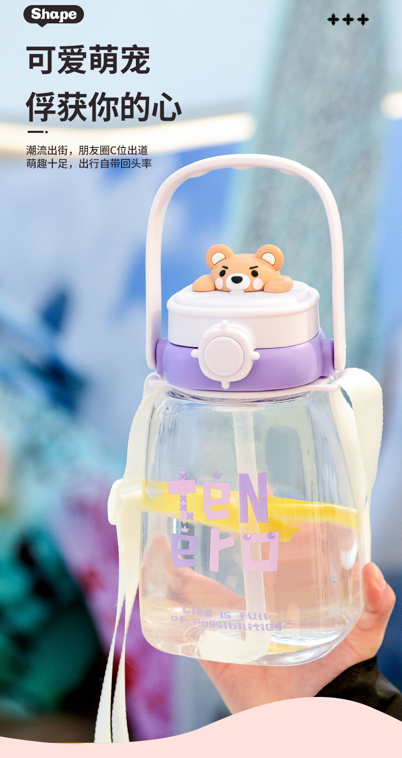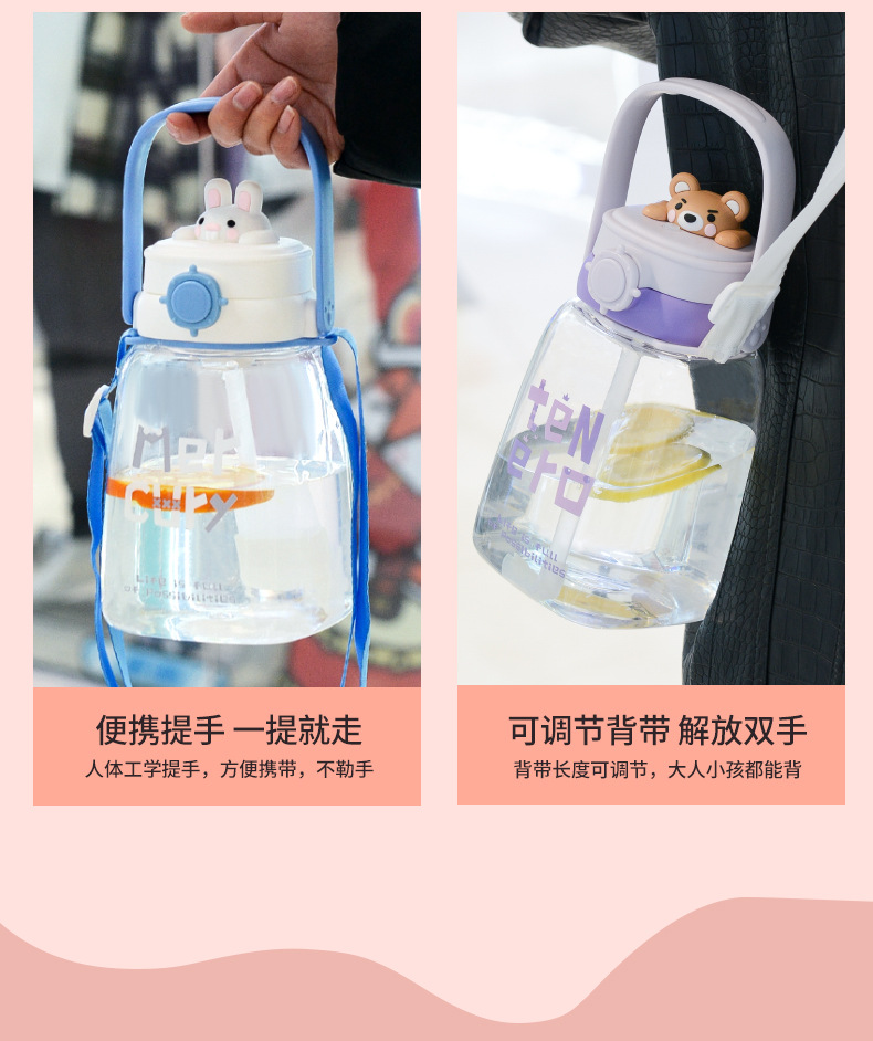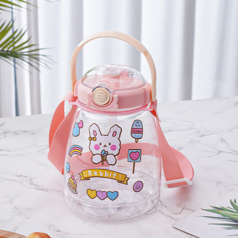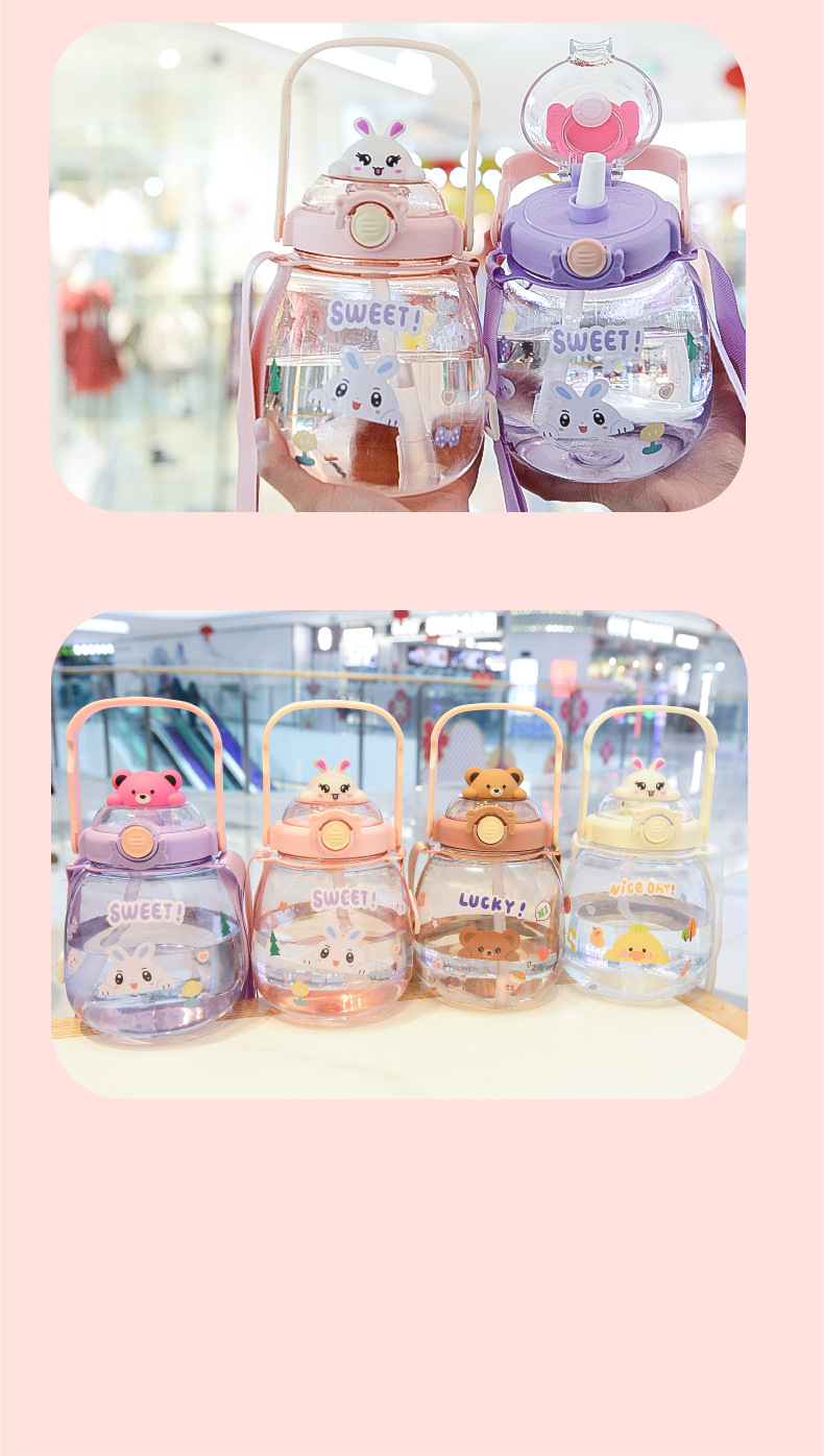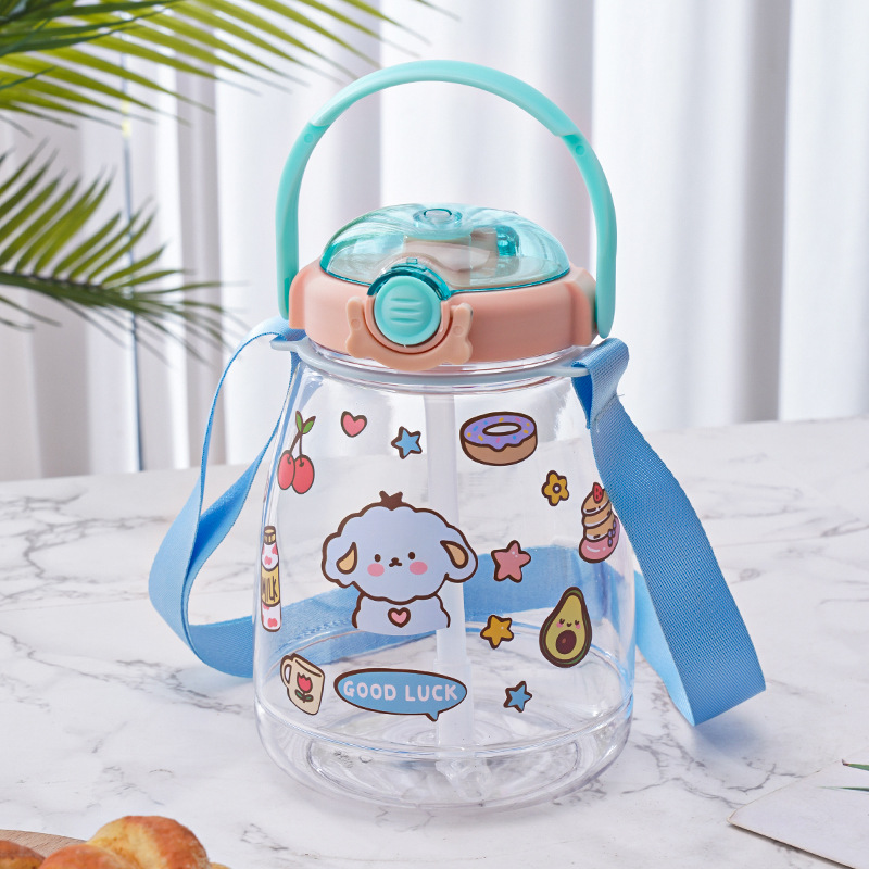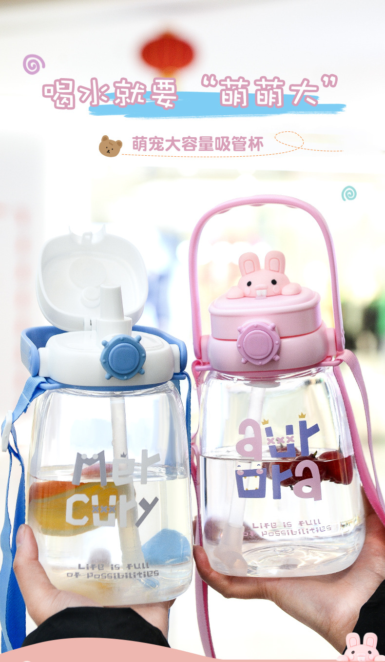 대용량 어린이 만화 캐릭터 귀여운 애완동물 빨대 물병 학생용 휴대용 스트랩 플라스틱 물컵 도매스토어 가기