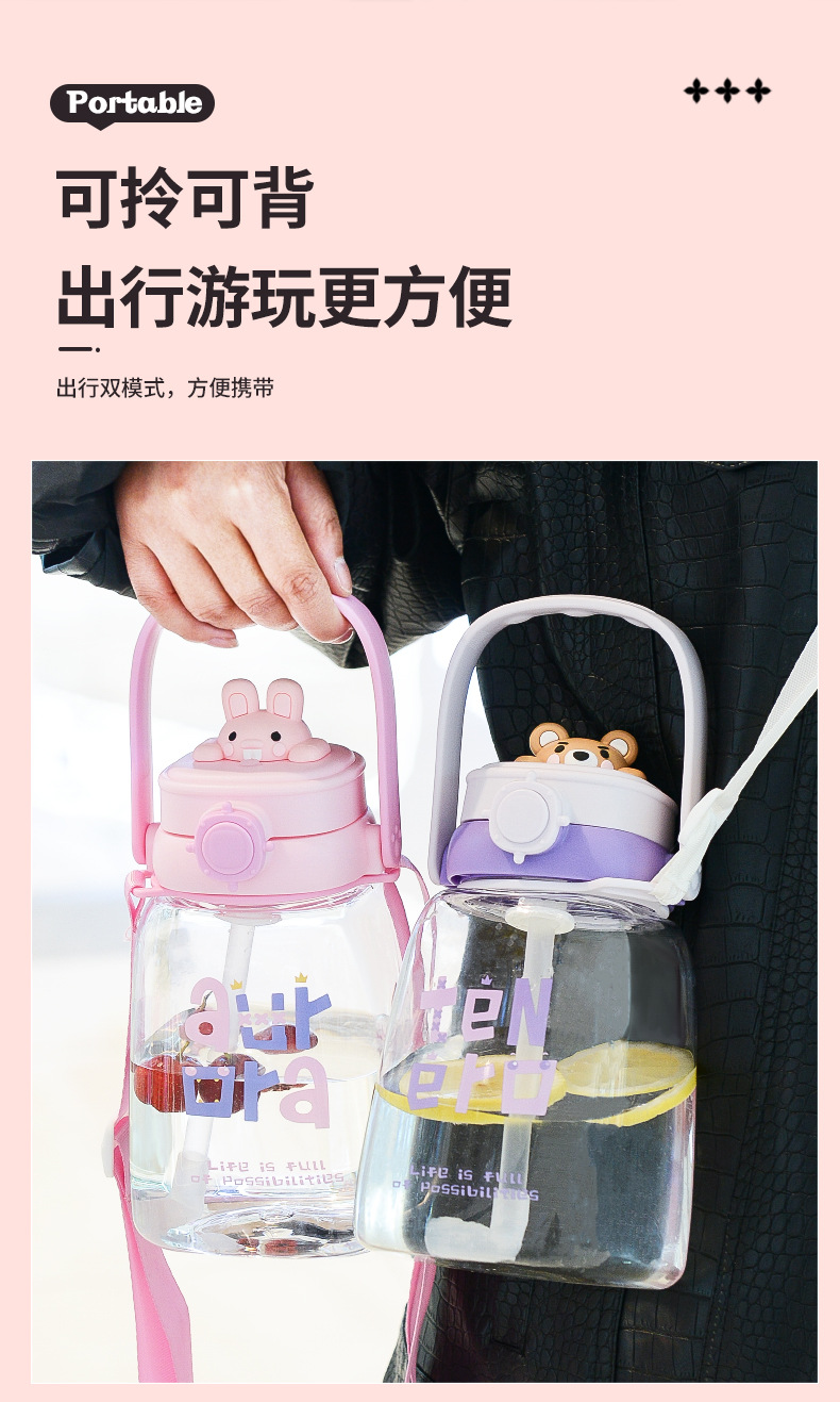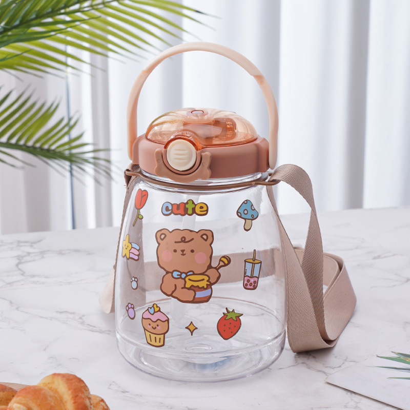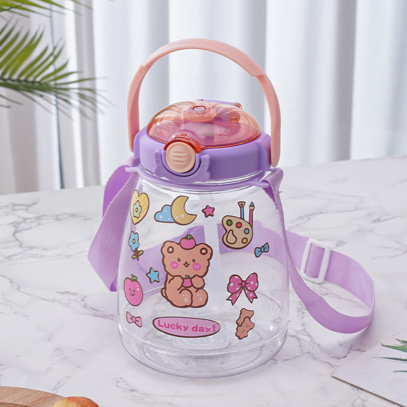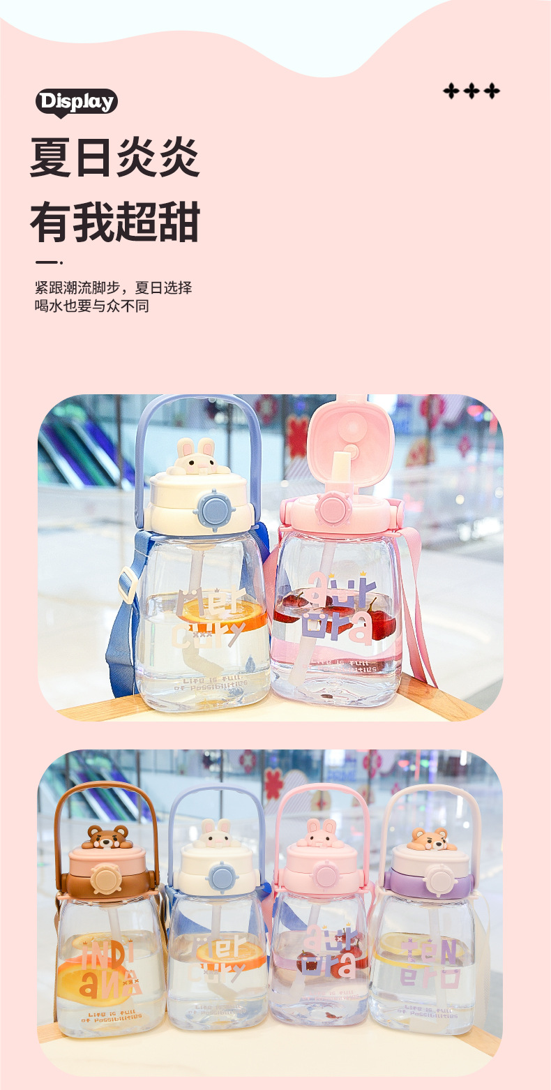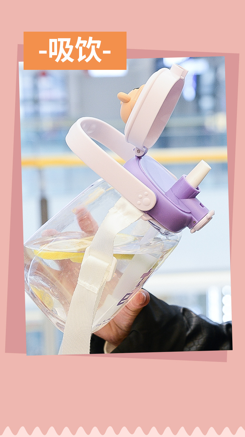 대용량 어린이 만화 캐릭터 귀여운 애완동물 빨대 물병 학생용 휴대용 스트랩 플라스틱 물컵 도매스토어 가기