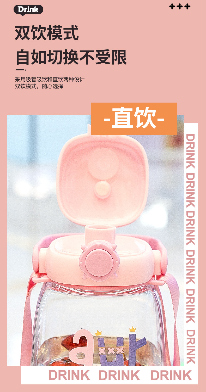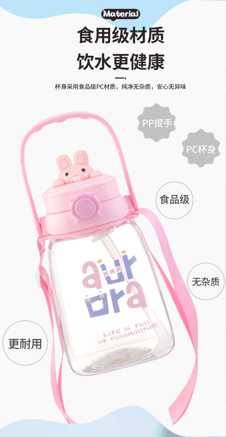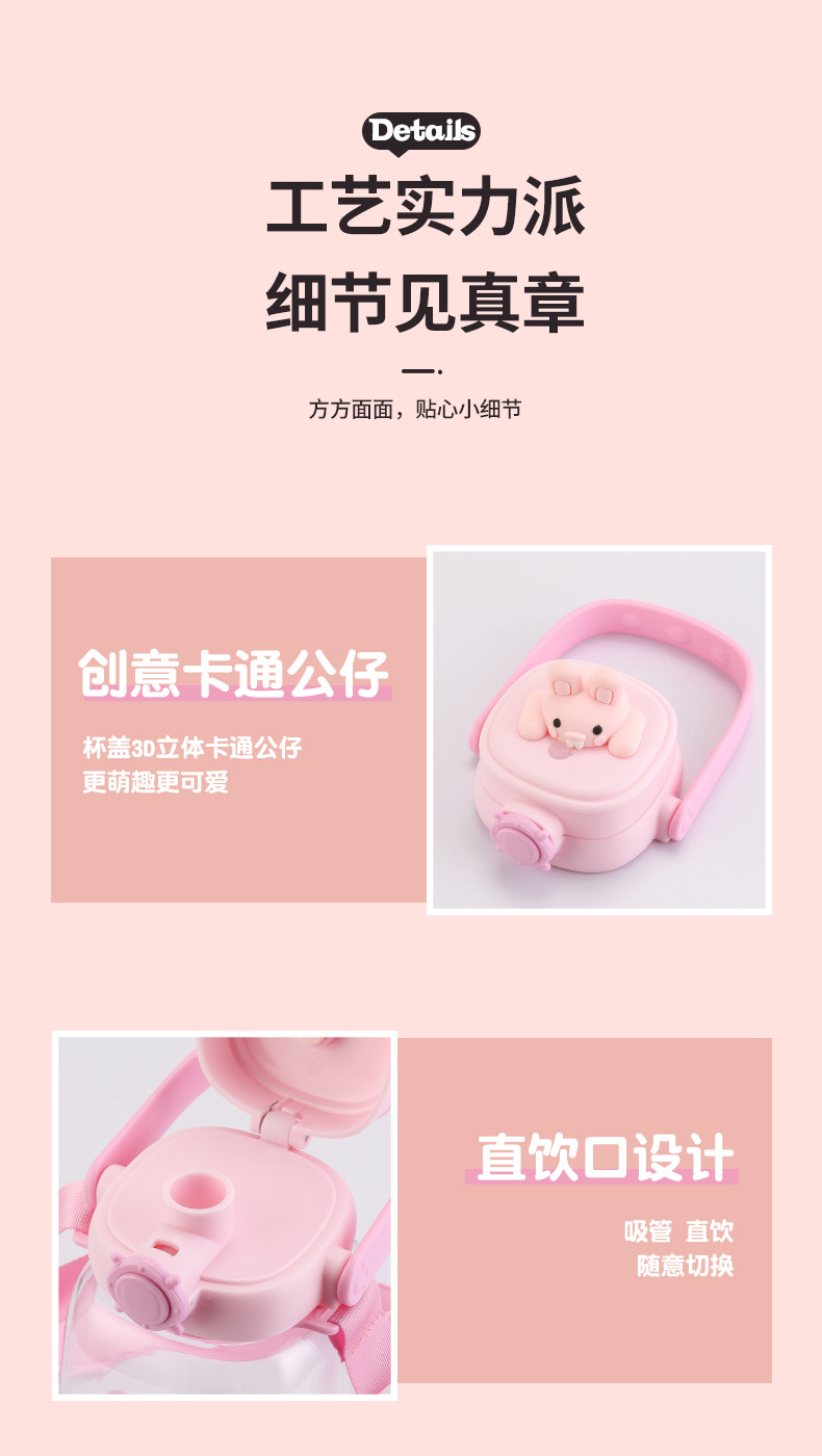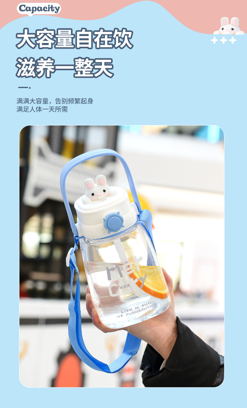 대용량 어린이 만화 캐릭터 귀여운 애완동물 빨대 물병 학생용 휴대용 스트랩 플라스틱 물컵 도매스토어 가기