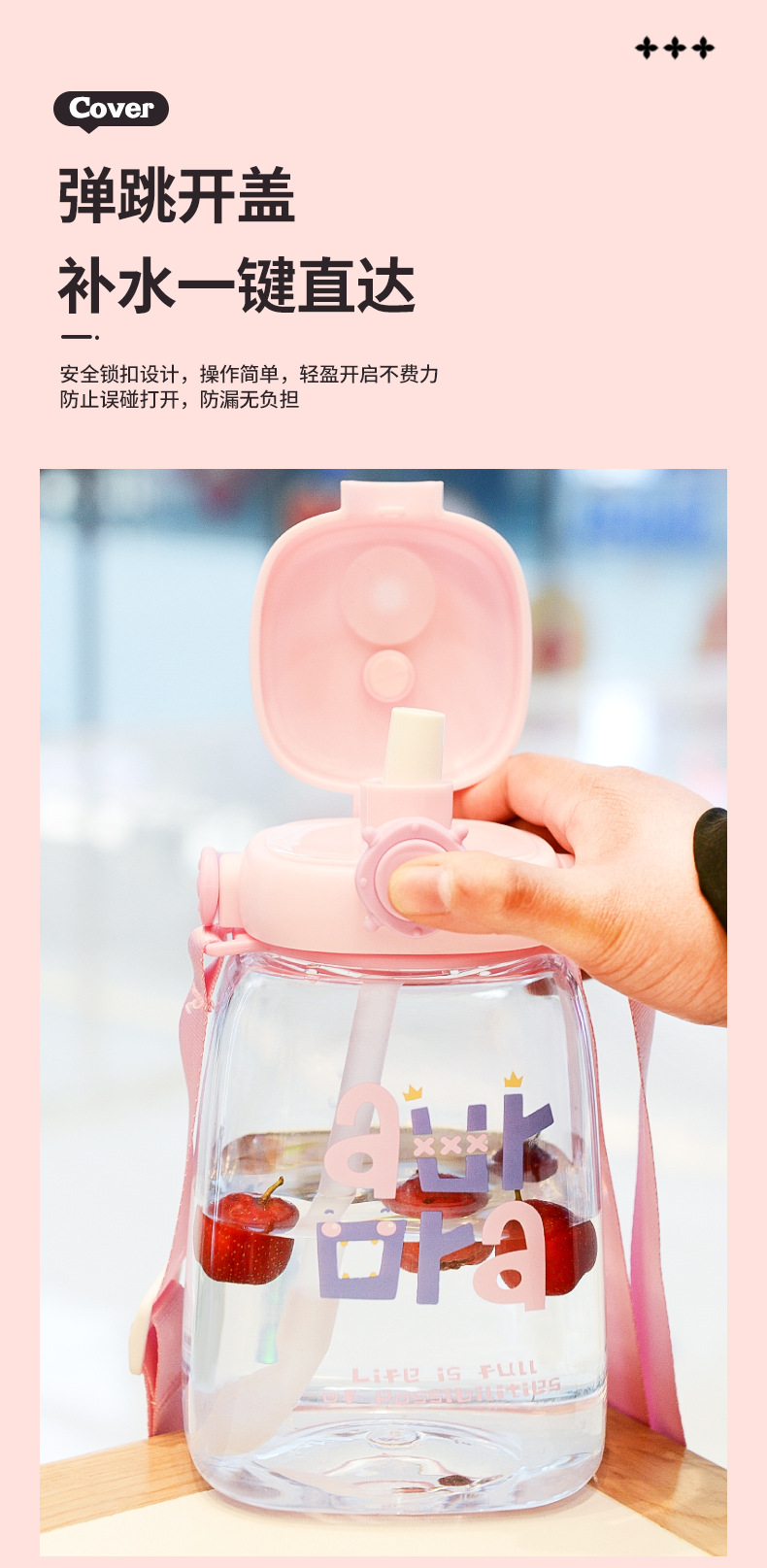 대용량 어린이 만화 캐릭터 귀여운 애완동물 빨대 물병 학생용 휴대용 스트랩 플라스틱 물컵 도매