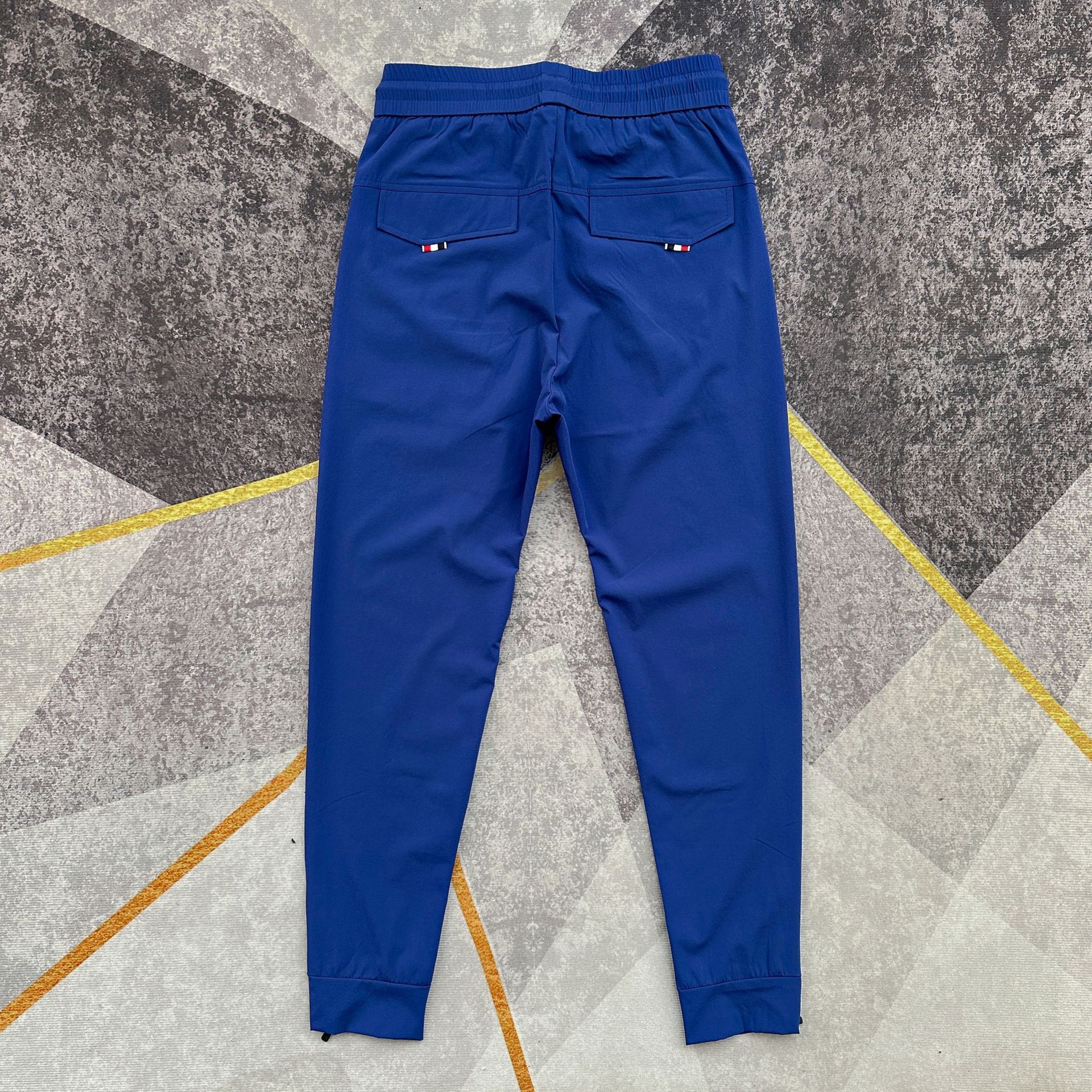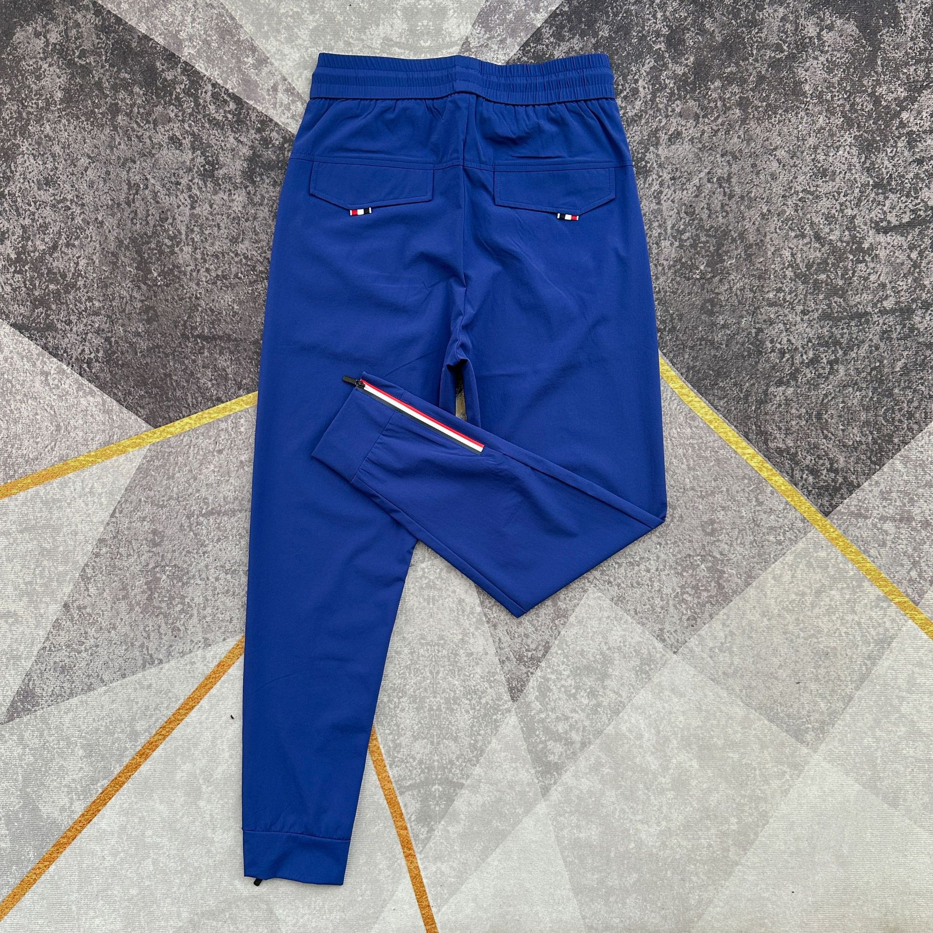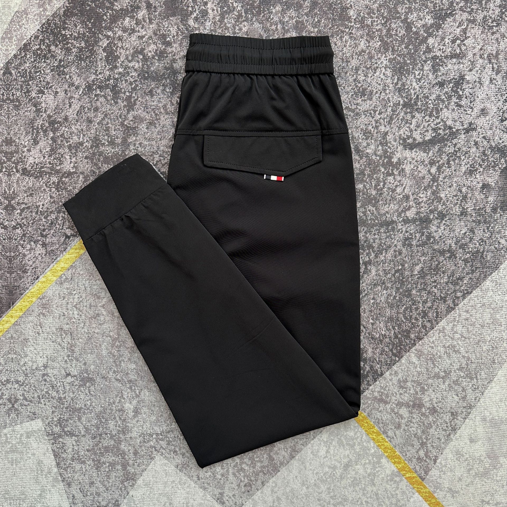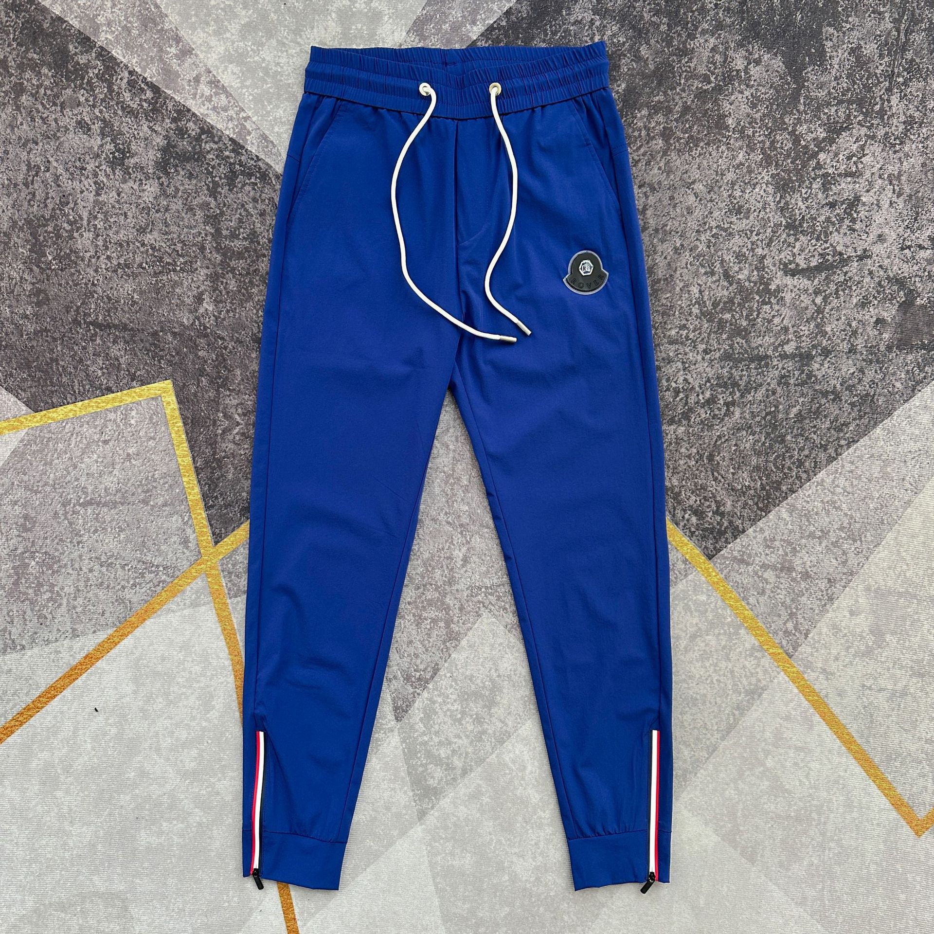 여름 얇은 아이스 실크 통기성 에어컨 바지 남성용 슬림핏 백 지퍼 스포츠 발목 바지 밀크 실크 속건 바지스토어 가기
