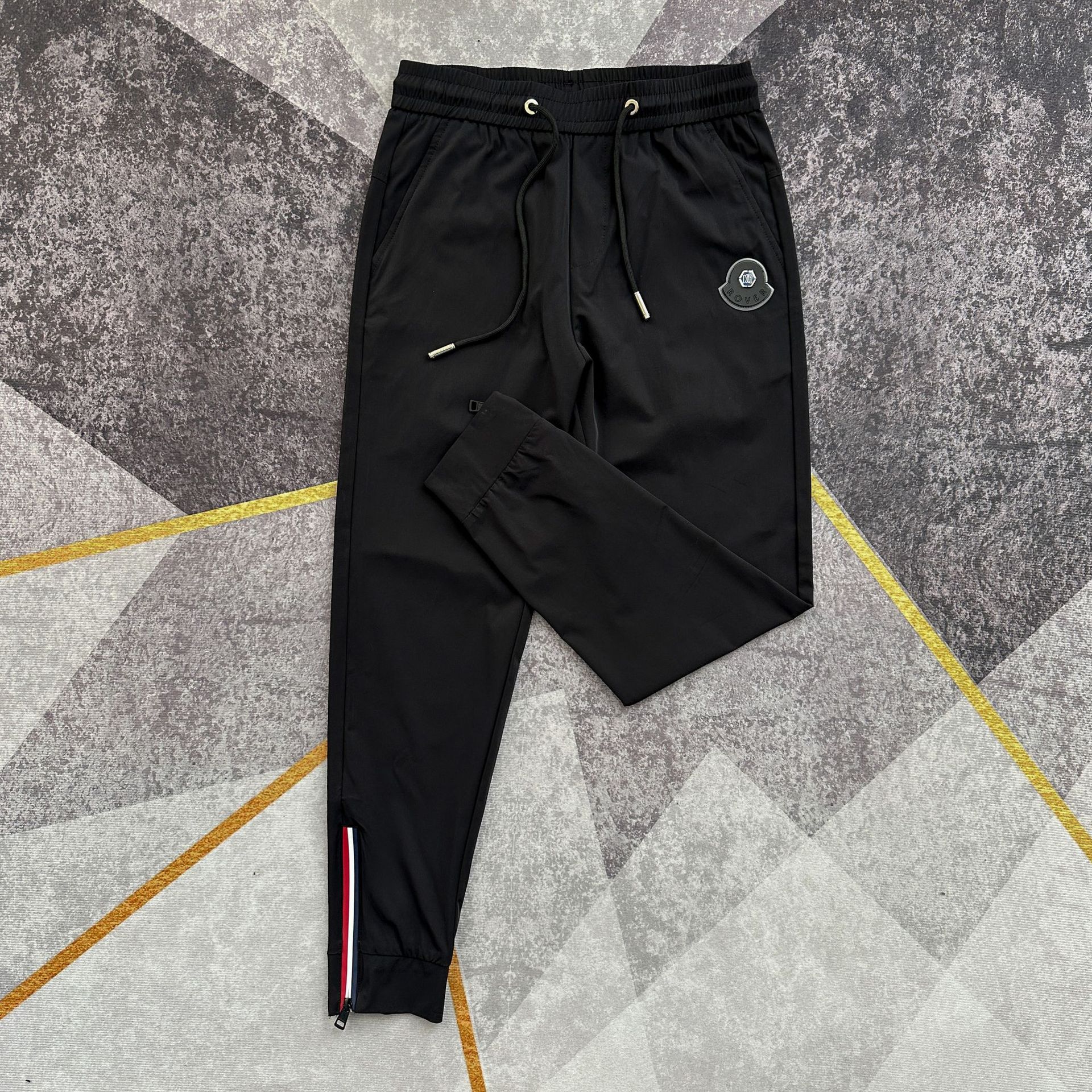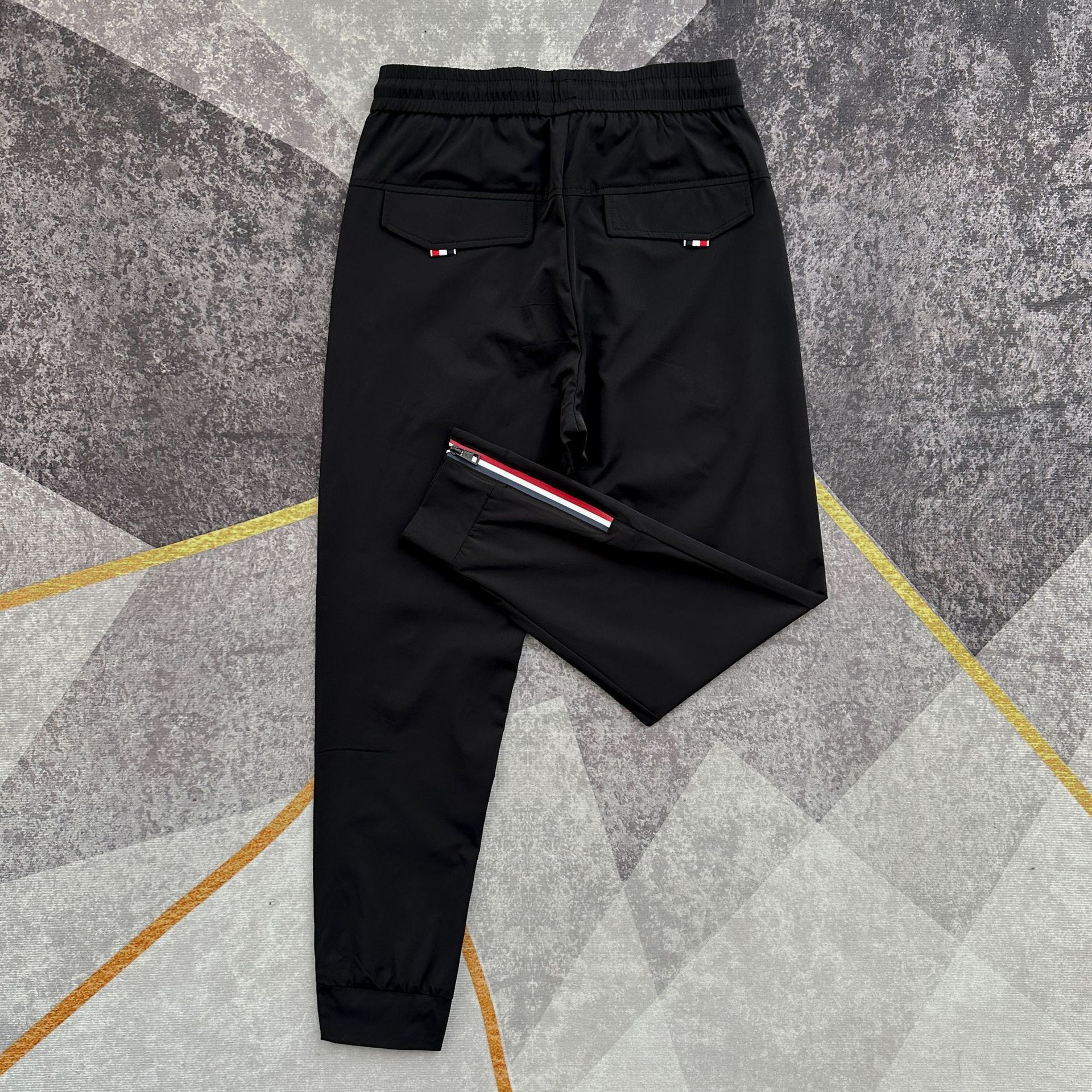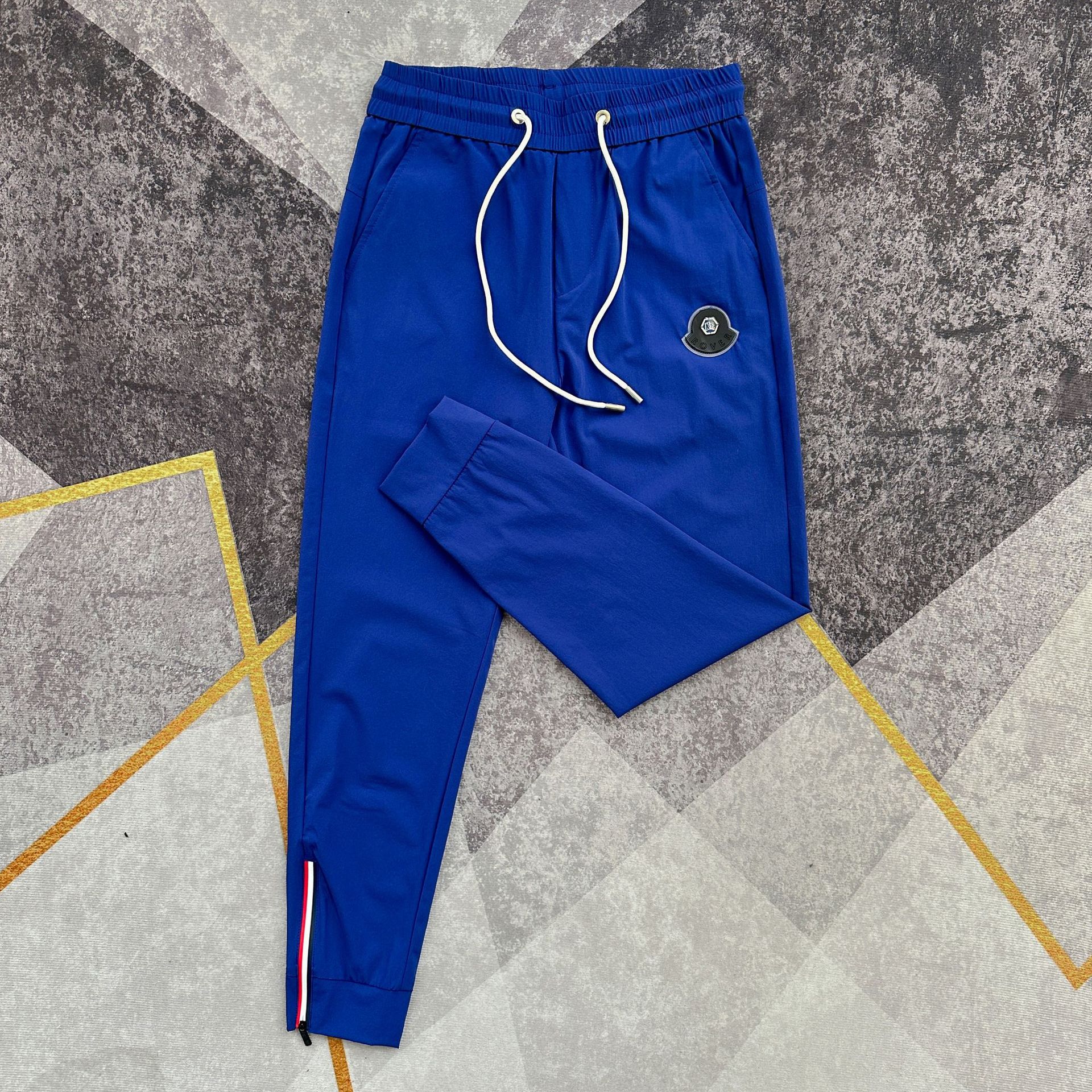 여름 얇은 아이스 실크 통기성 에어컨 바지 남성용 슬림핏 백 지퍼 스포츠 발목 바지 밀크 실크 속건 바지스토어 가기