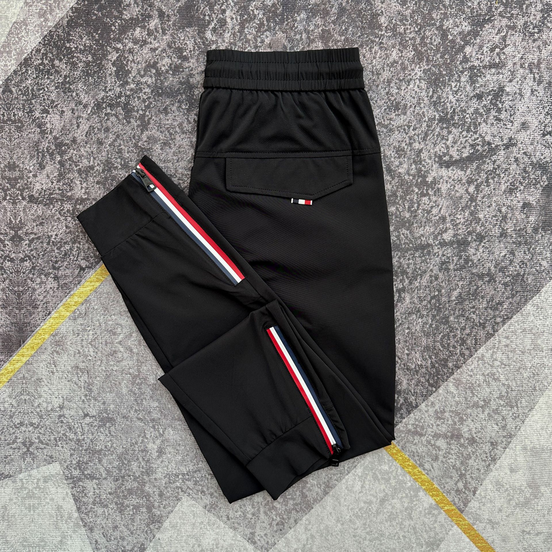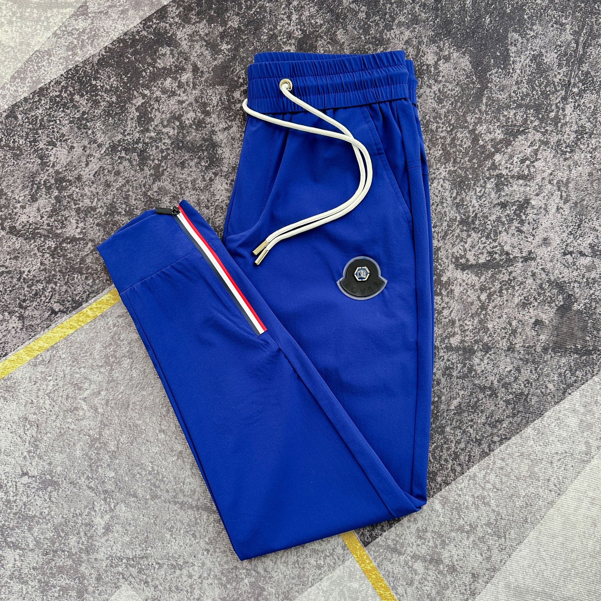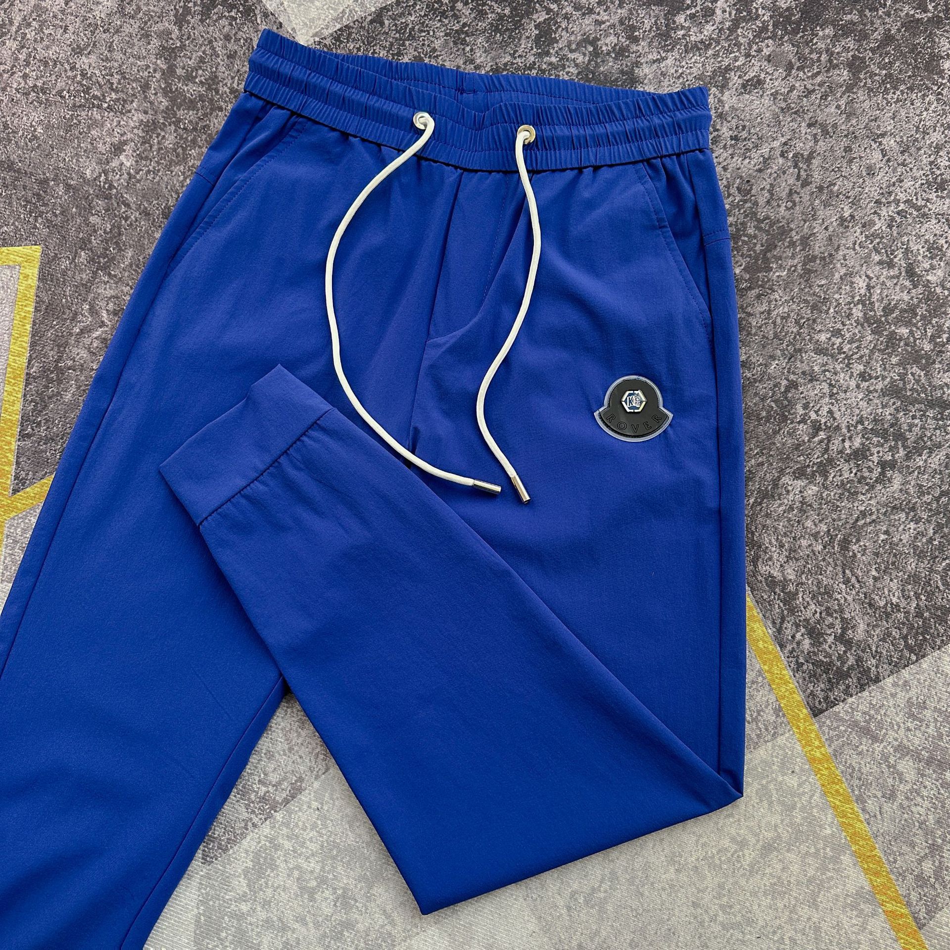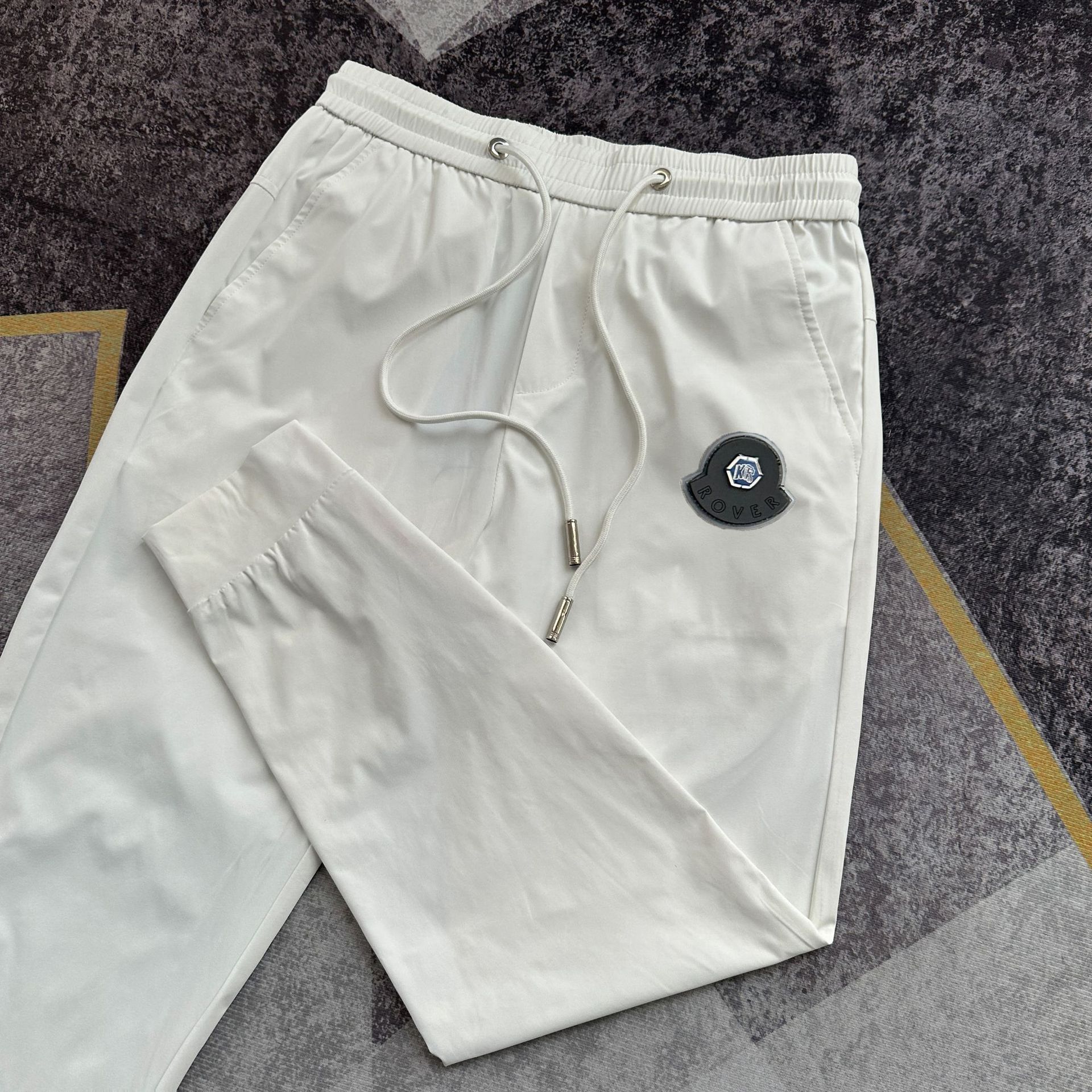 여름 얇은 아이스 실크 통기성 에어컨 바지 남성용 슬림핏 백 지퍼 스포츠 발목 바지 밀크 실크 속건 바지스토어 가기