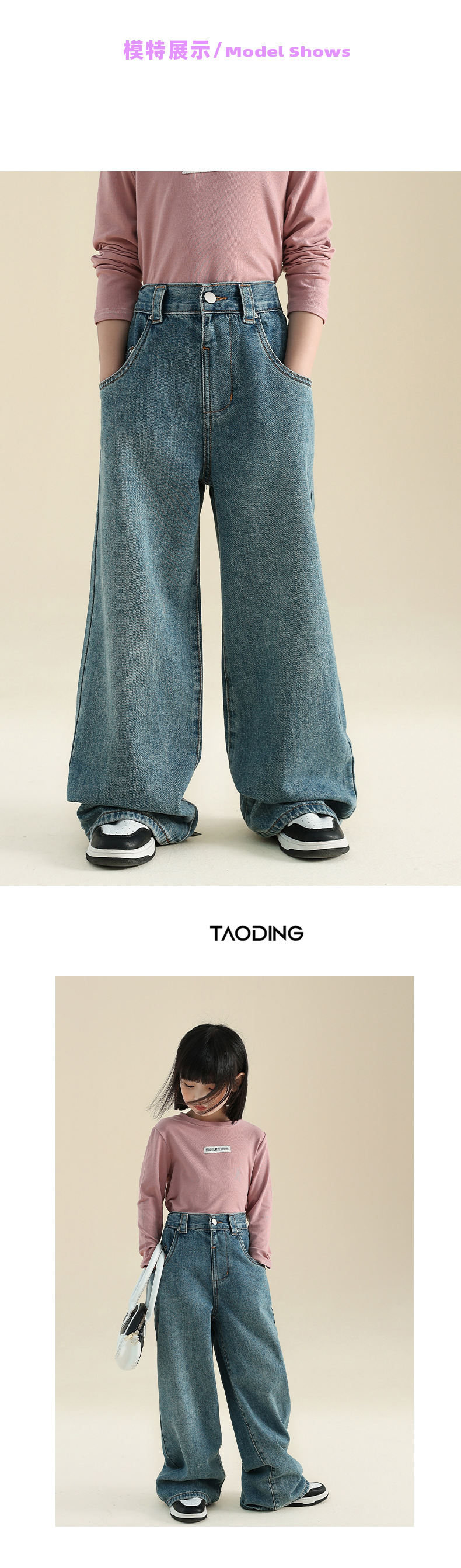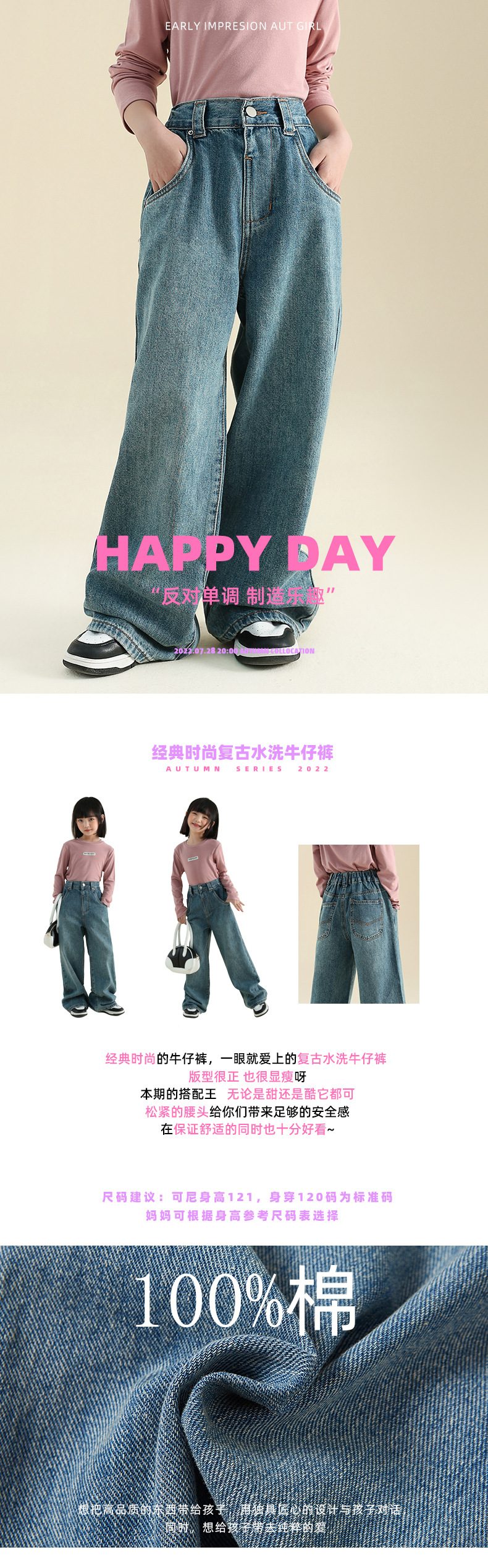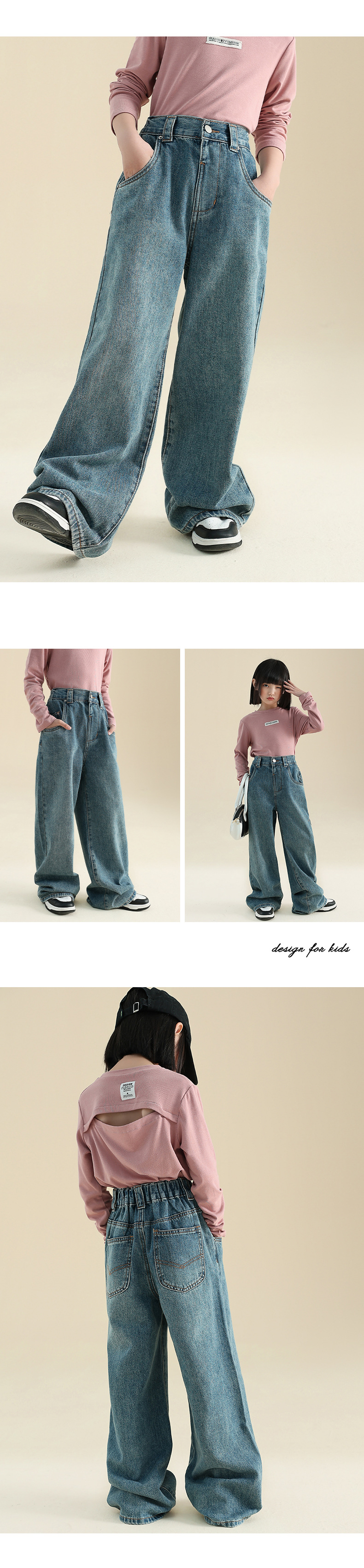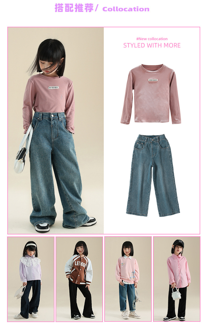 봄 가을 신상 여아 스트레이트 팬츠 와이드 팬츠 아동 중대형 여아복 한국 스타일 캐주얼 청바지 긴바지스토어 가기
