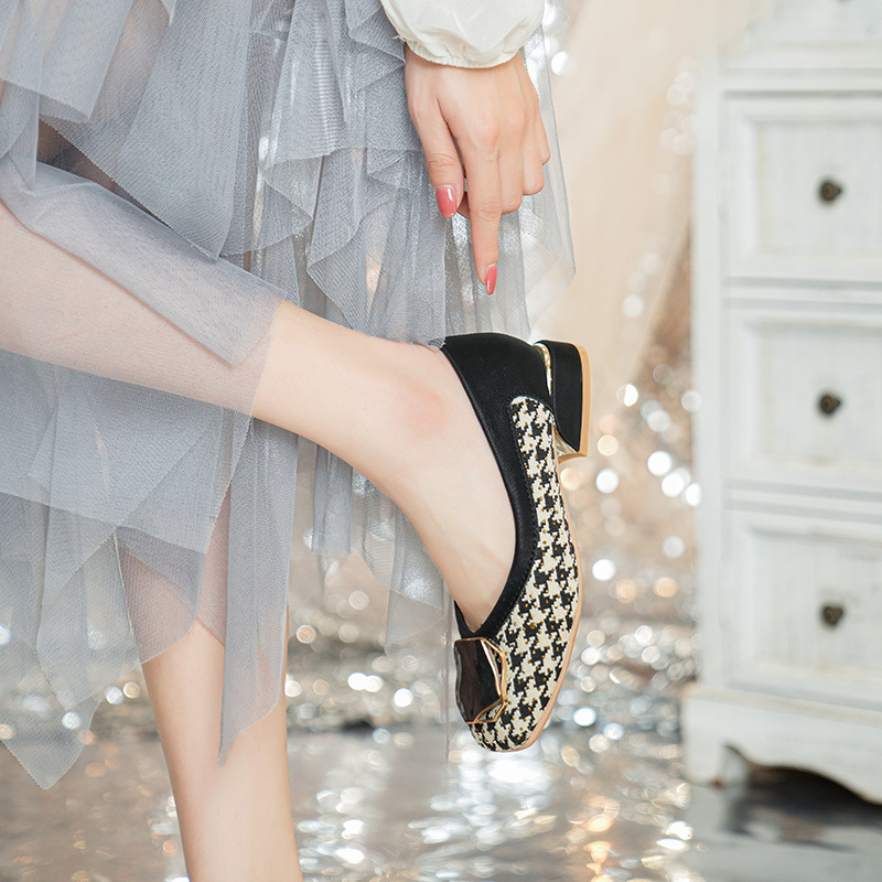 188-5 봄 새 프랑스 싱글 신발 여성용 두꺼운 굽 메리 제인 신발 여성용 스퀘어 헤드 미들 힐 밀크 신발 작은 Xiangfeng 여성 신발