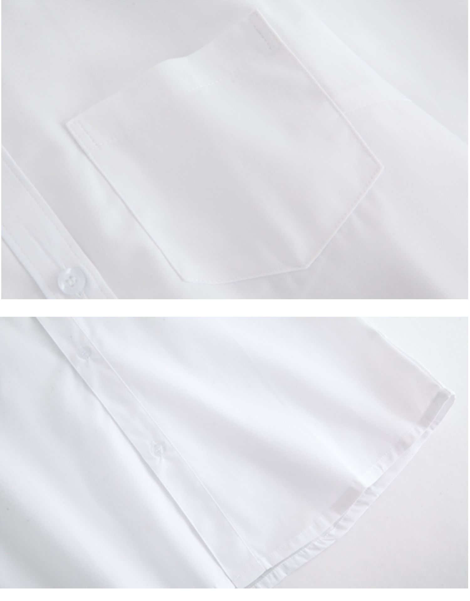 화이트 셔츠 소녀의 여름 반팔 긴팔 플러스 사이즈 대학 스타일 기본 느슨한 jk 탑 스탠드 칼라 셔츠