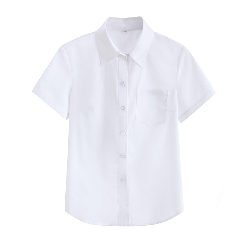 • 뾰족한 칼라가있는 소녀의 반팔 셔츠 (포켓 없음)