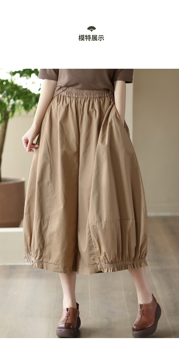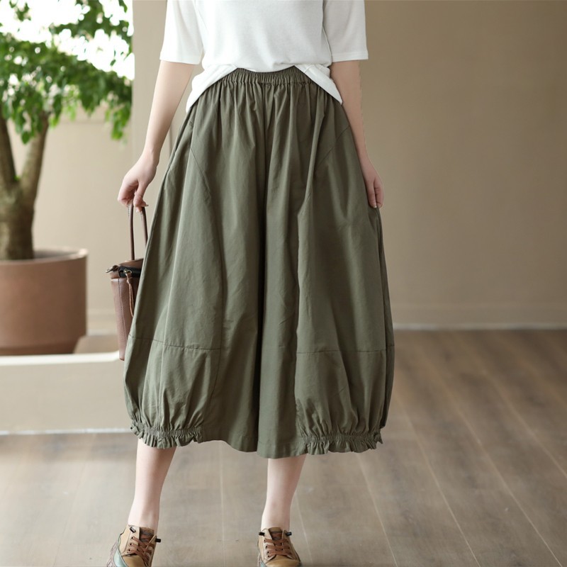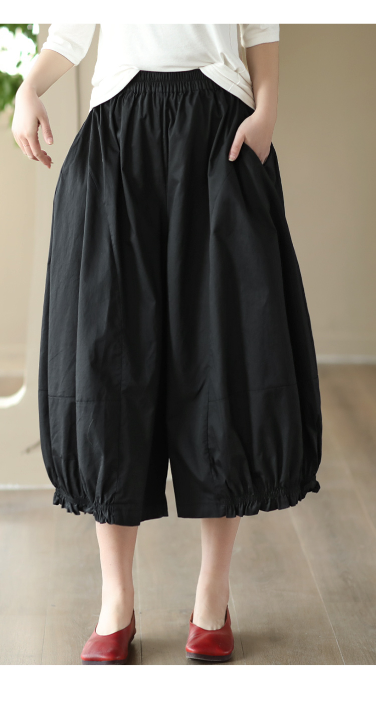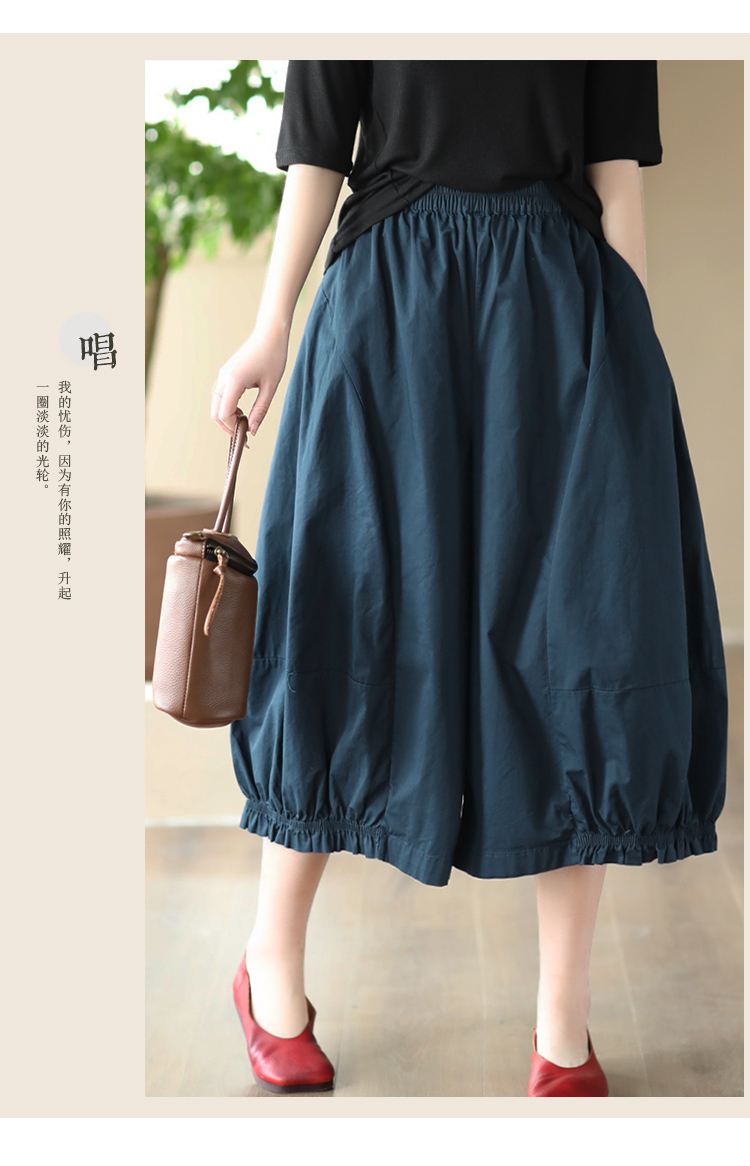 여름 새로운 빈티지 면 캐주얼 와이드 팬츠 여성용 신축성 허리 우드 이어 퀼로트 와이드 팬츠 카프리 팬츠 8300