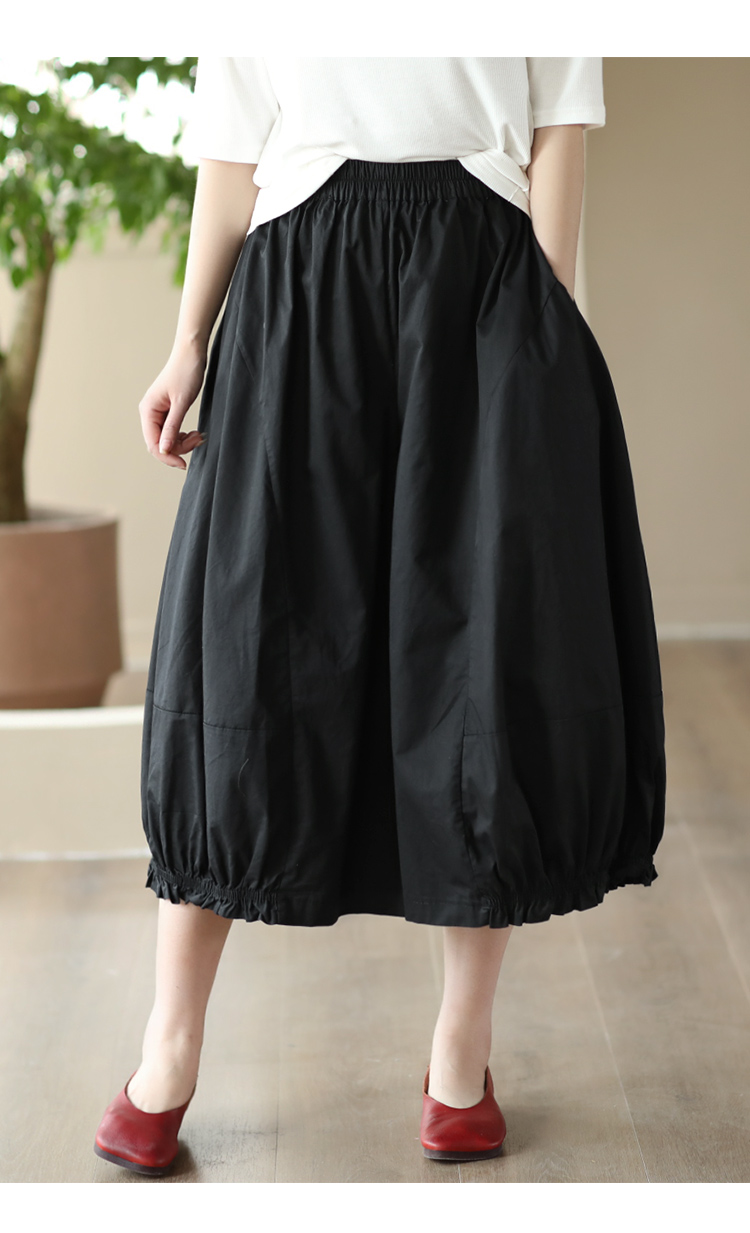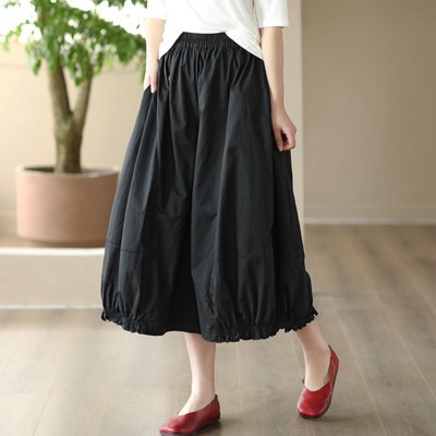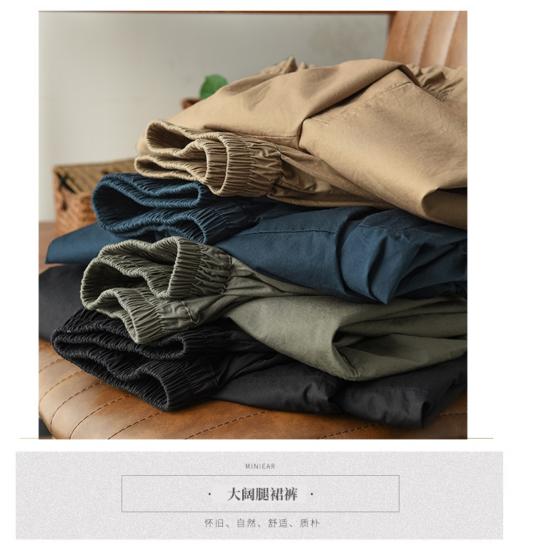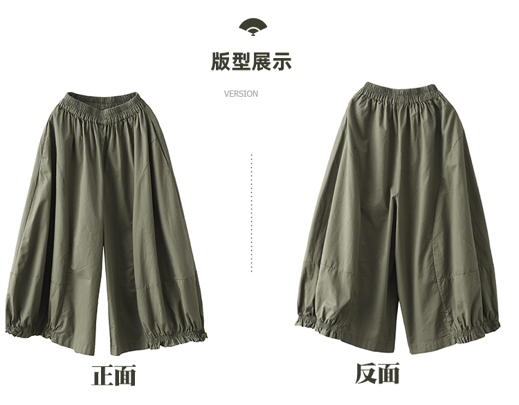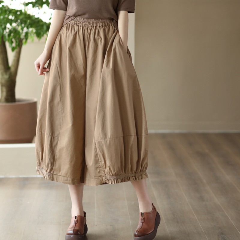 여름 새로운 빈티지 면 캐주얼 와이드 팬츠 여성용 신축성 허리 우드 이어 퀼로트 와이드 팬츠 카프리 팬츠 8300