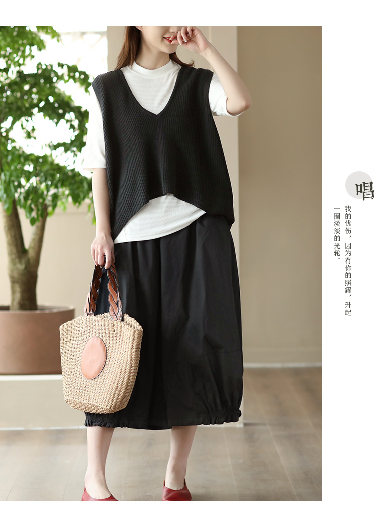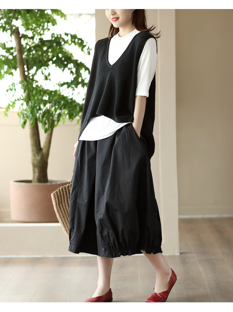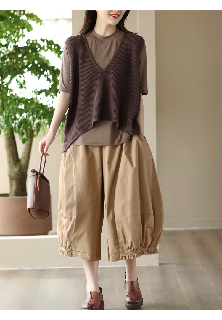 여름 새로운 빈티지 면 캐주얼 와이드 팬츠 여성용 신축성 허리 우드 이어 퀼로트 와이드 팬츠 카프리 팬츠 8300스토어 가기