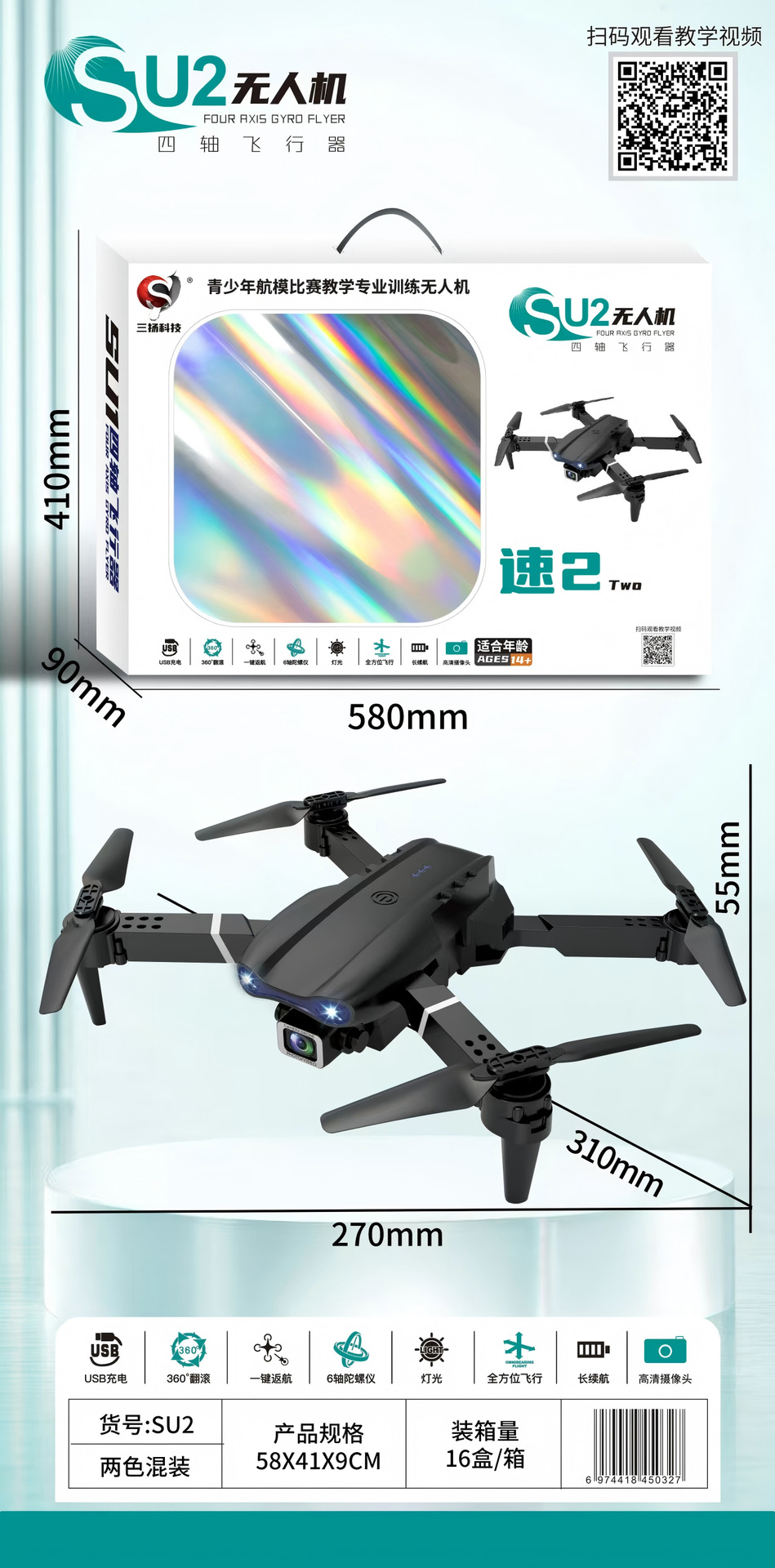 UAV 장난감 고정 높이 2 축 항공기 원격 제어 항공기 모형 선물 상자 선물 교육 기관 선물 도매