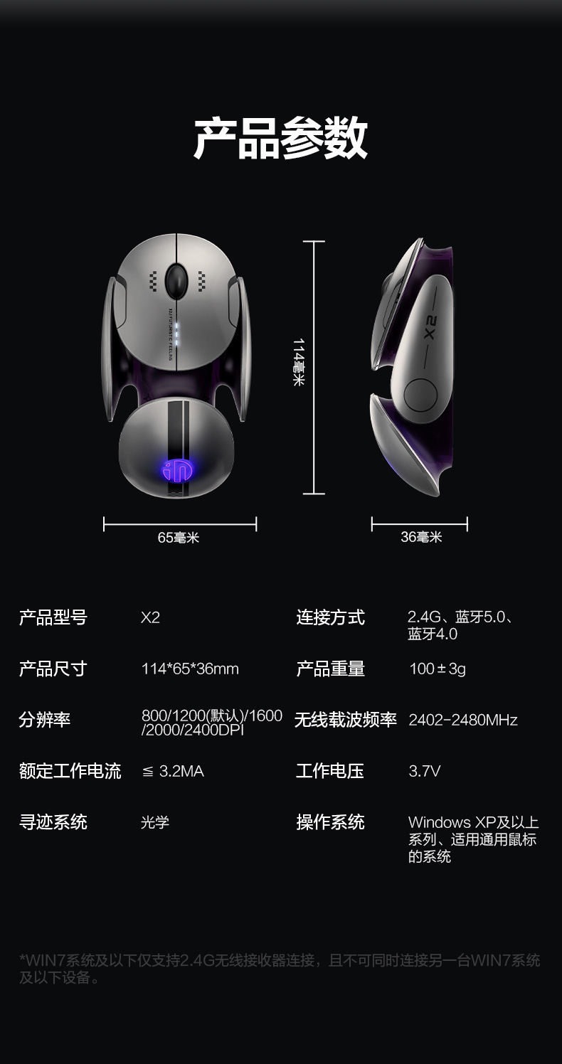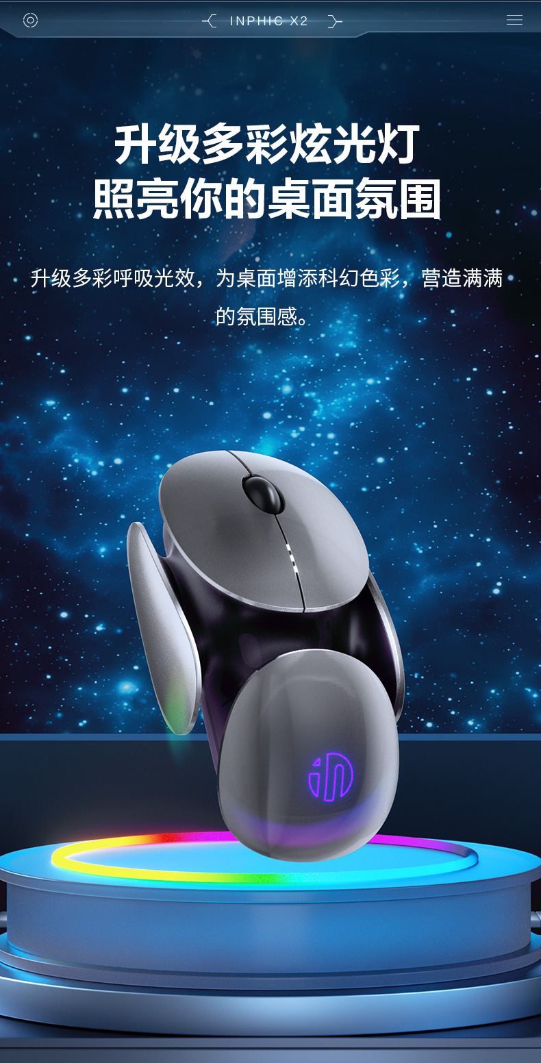 INPHIC X2 Bluetooth 무선 3모드 마우스 무음 충전 발광 비즈니스 오피스 e스포츠 게임스토어 가기