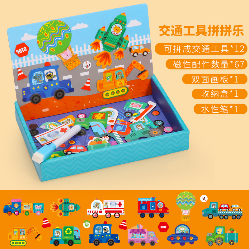 어린이 마그네틱 스티커 퍼즐 원피스 게임 교통 공학 남자의 보물 여자의 보물 교육 완구 1-3-6 세 조기 교육스토어 가기