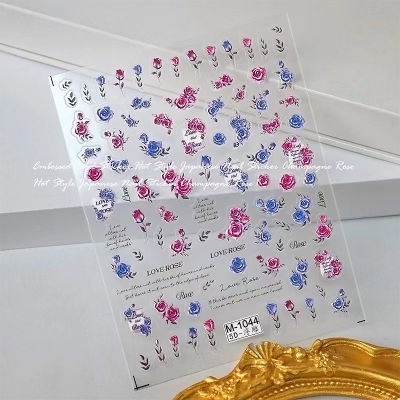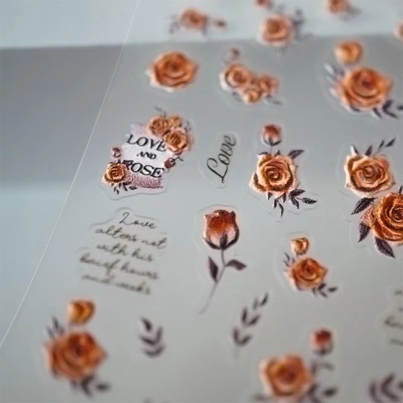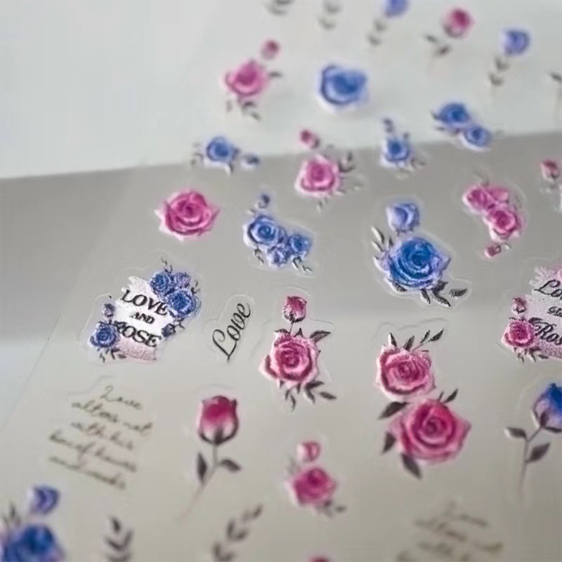 새로운 네일 아트 스테레오 양각 여러 가지 빛깔의 목가적 인 빈티지 장미 로맨틱 꽃 언어 절묘한 종이 카드 포장