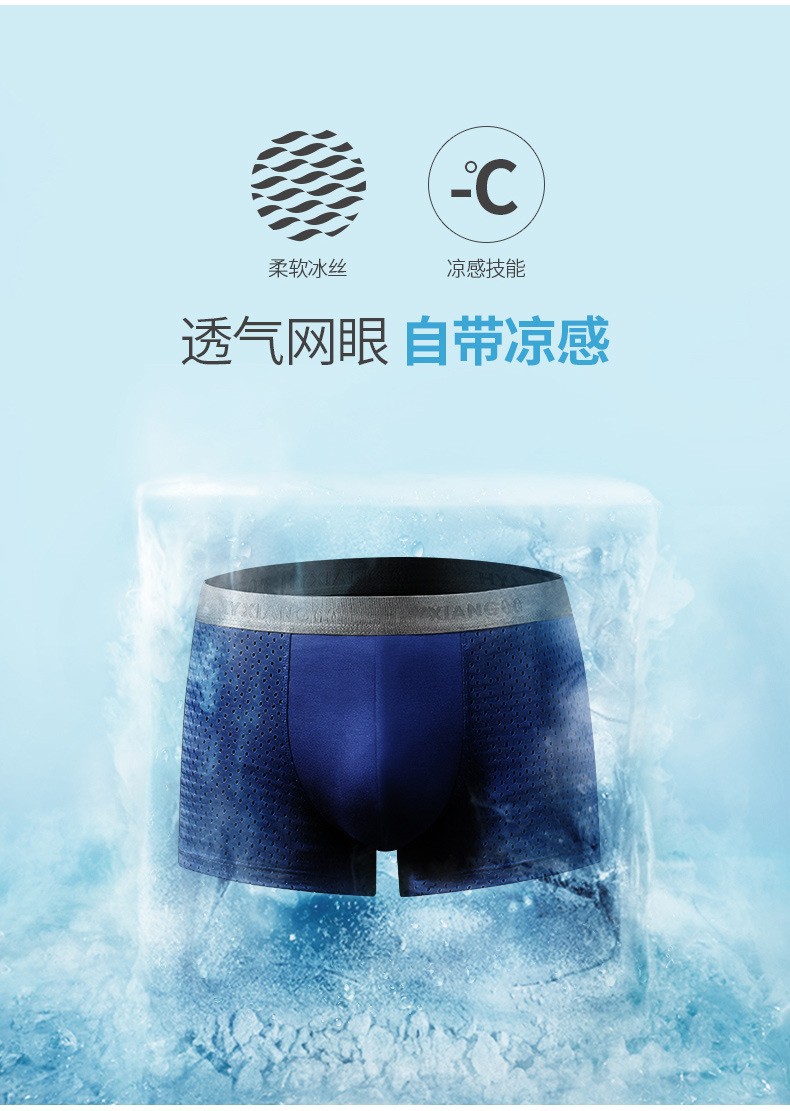 恒源祥 신상 남성 중간 허리 속옷 아이스 실크 남성 사각팬티 여름 메쉬 사각팬티 제조업체 도매스토어 가기
