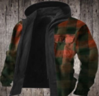 2020外贸男装欧美秋冬款加厚棉衣格纹长袖宽松连帽夹克外套