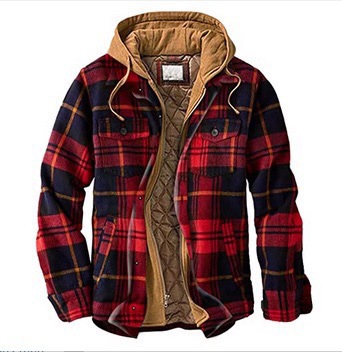 외국 무역 남성복 유럽 및 미국 가을 겨울용 두꺼운 면 코트 체크무늬 긴팔 루즈핏 후드 재킷