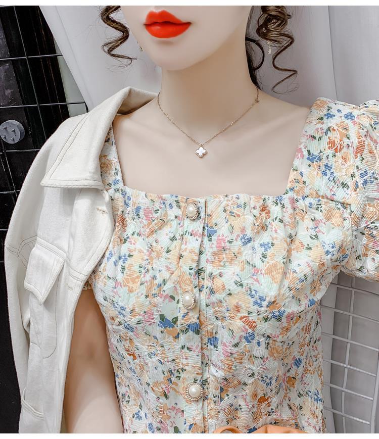 프렌치 스퀘어 칼라 반팔 꽃무늬 쉬폰 셔츠 여성용 디자인 틈새 여름 2023 새로운 퍼프 슬리브 짧은 탑스토어 가기