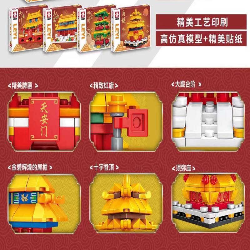 Leyi 브랜드 69013 고궁 박물관 건물 스트리트 뷰 모델 3D 인쇄 퍼즐 접합 소년 소녀 휴가 빌딩 블록스토어 가기
