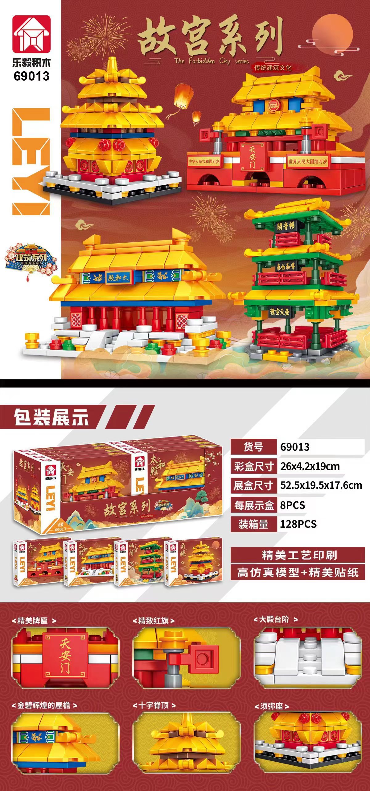 Leyi 브랜드 69013 고궁 박물관 건물 스트리트 뷰 모델 3D 인쇄 퍼즐 접합 소년 소녀 휴가 빌딩 블록