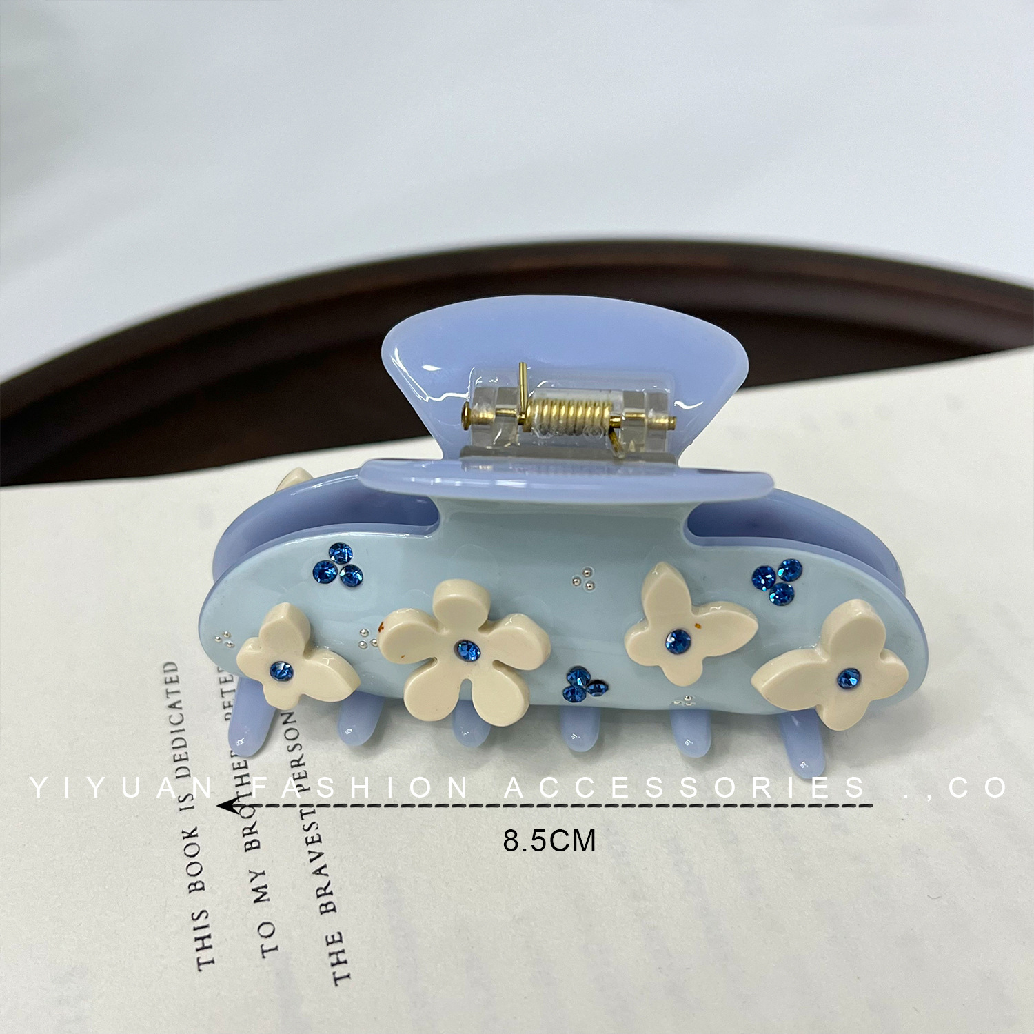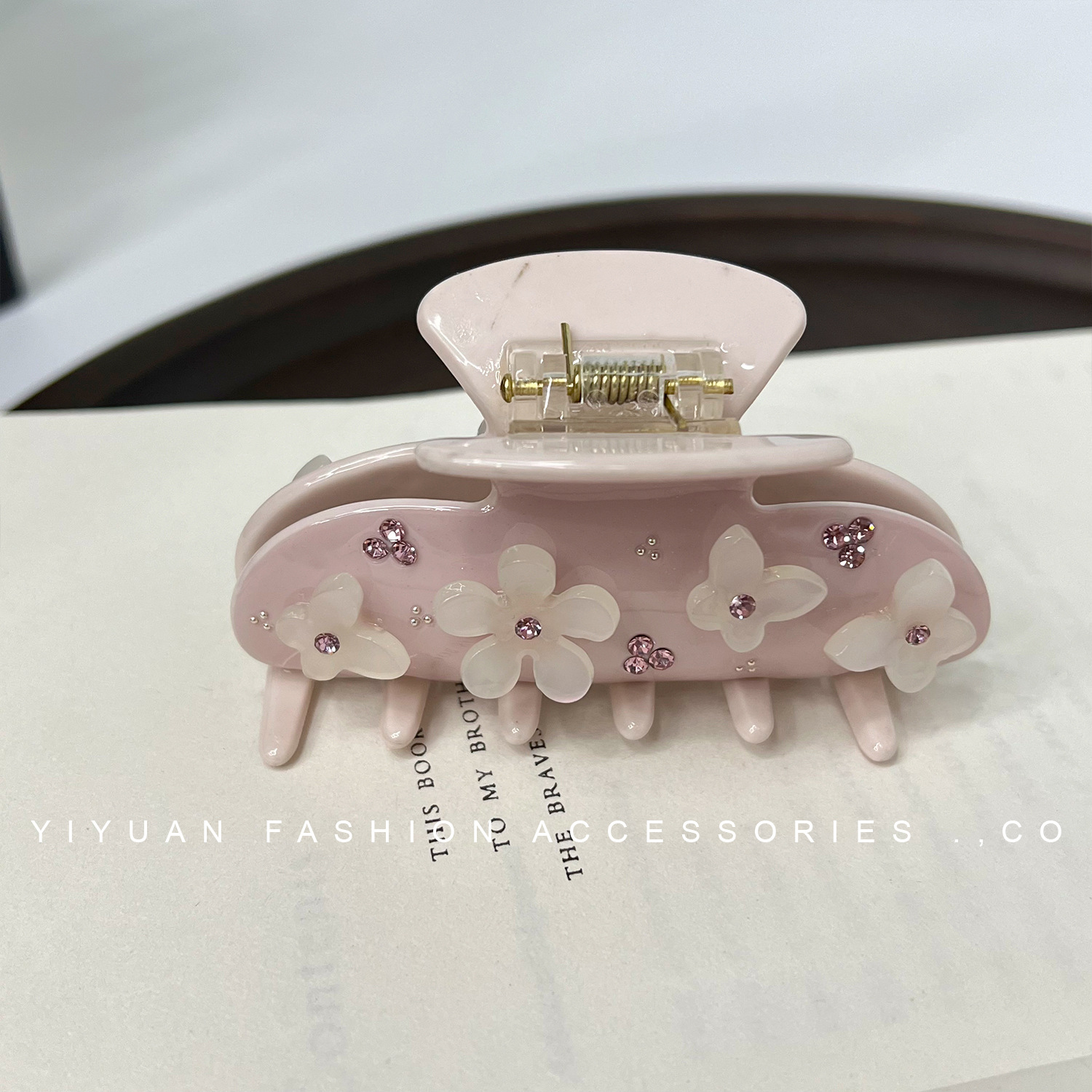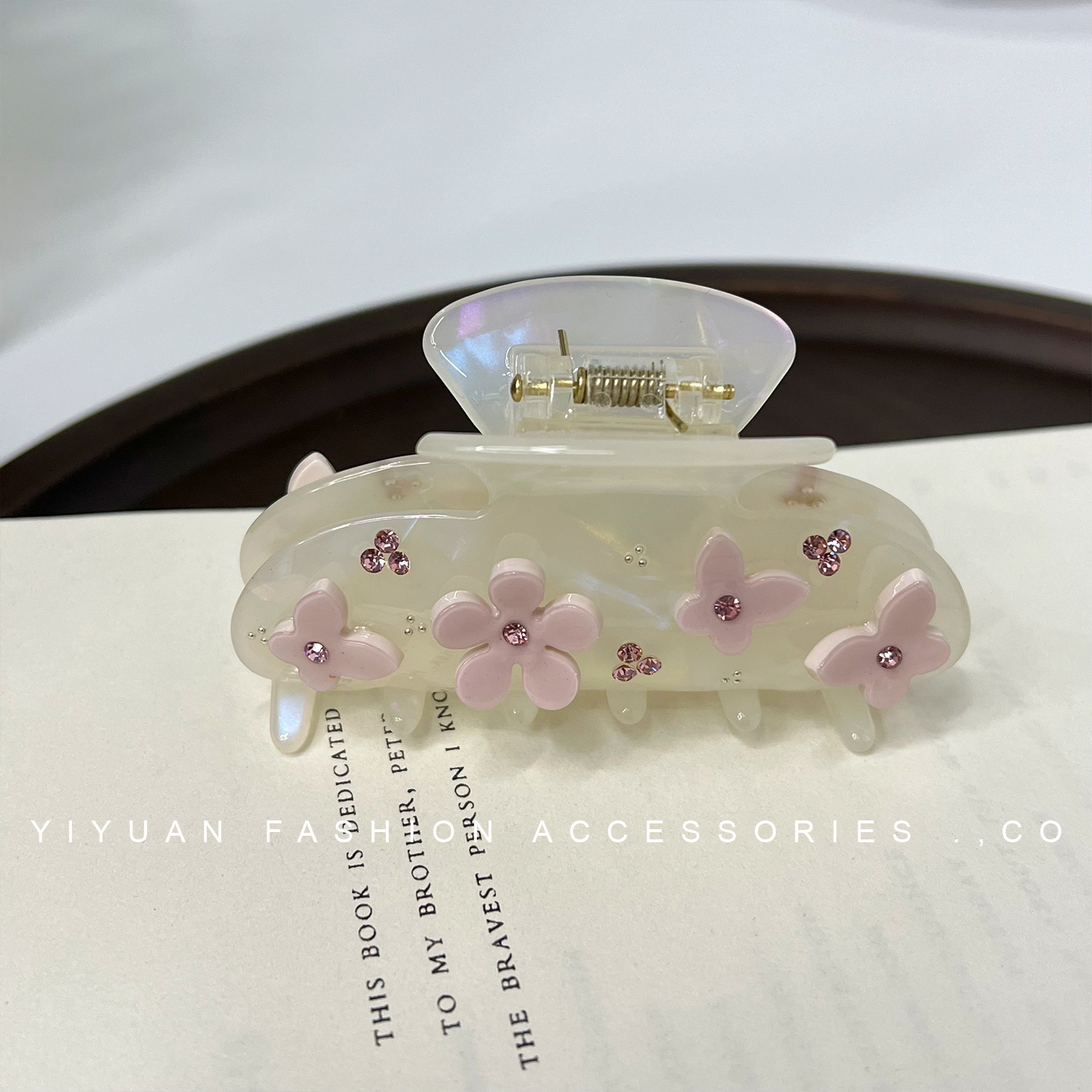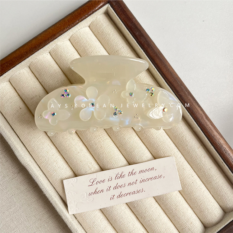 한국 스타일의 다이아몬드 장식 아세테이트 헤어핀, 나비꽃 아세테이트 집게핀, 독특한 디자인의 헤어핀, 샤크클립 헤어 액세서리