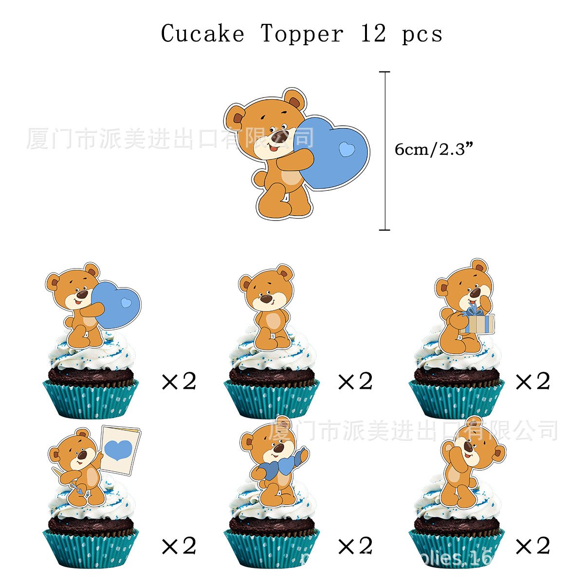 테디 베어 테마 파티 세트 생일 플래그 배너 케이크 카드 풍선 매달려 장식 소품 도매