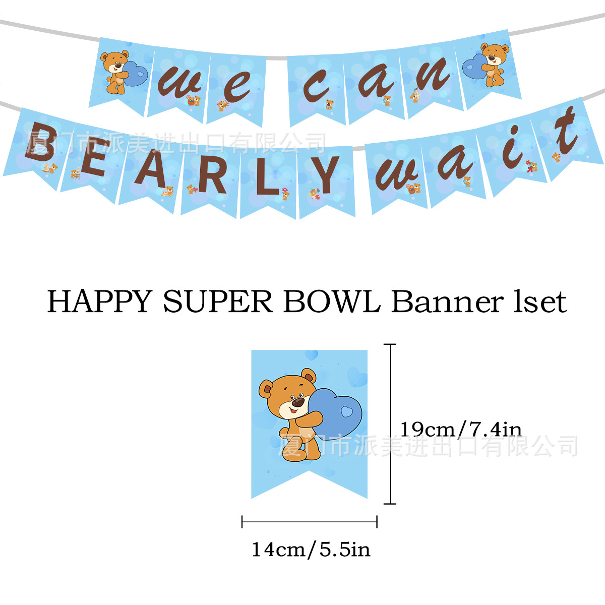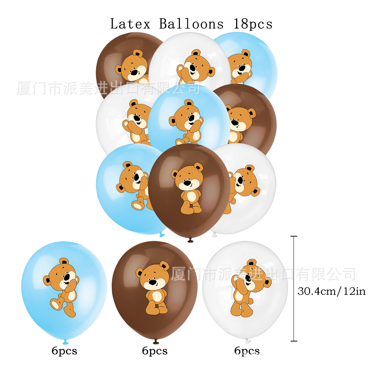 产品信息:泰迪熊主题派对套装生日拉旗横幅蛋糕插牌气球挂饰装饰道具批发