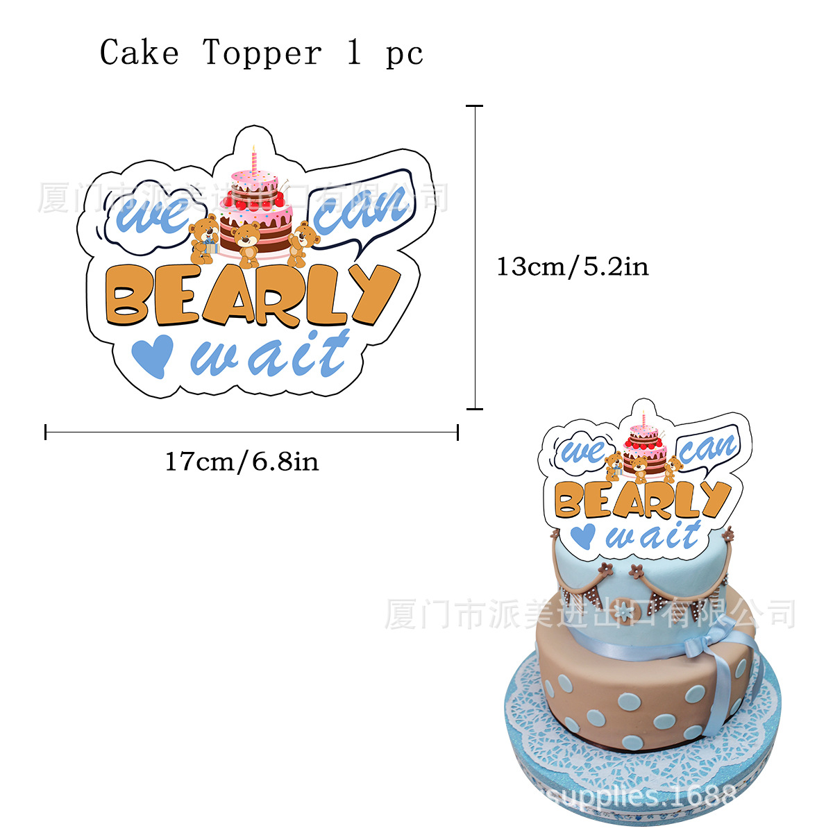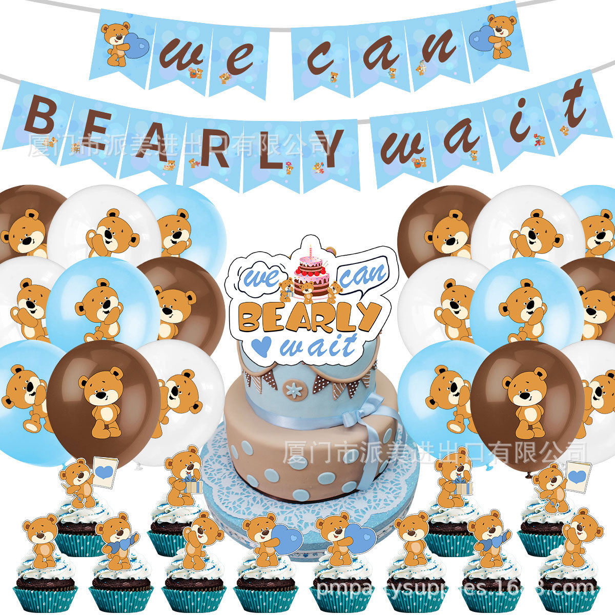테디 베어 테마 파티 세트 생일 플래그 배너 케이크 카드 풍선 매달려 장식 소품 도매스토어 가기
