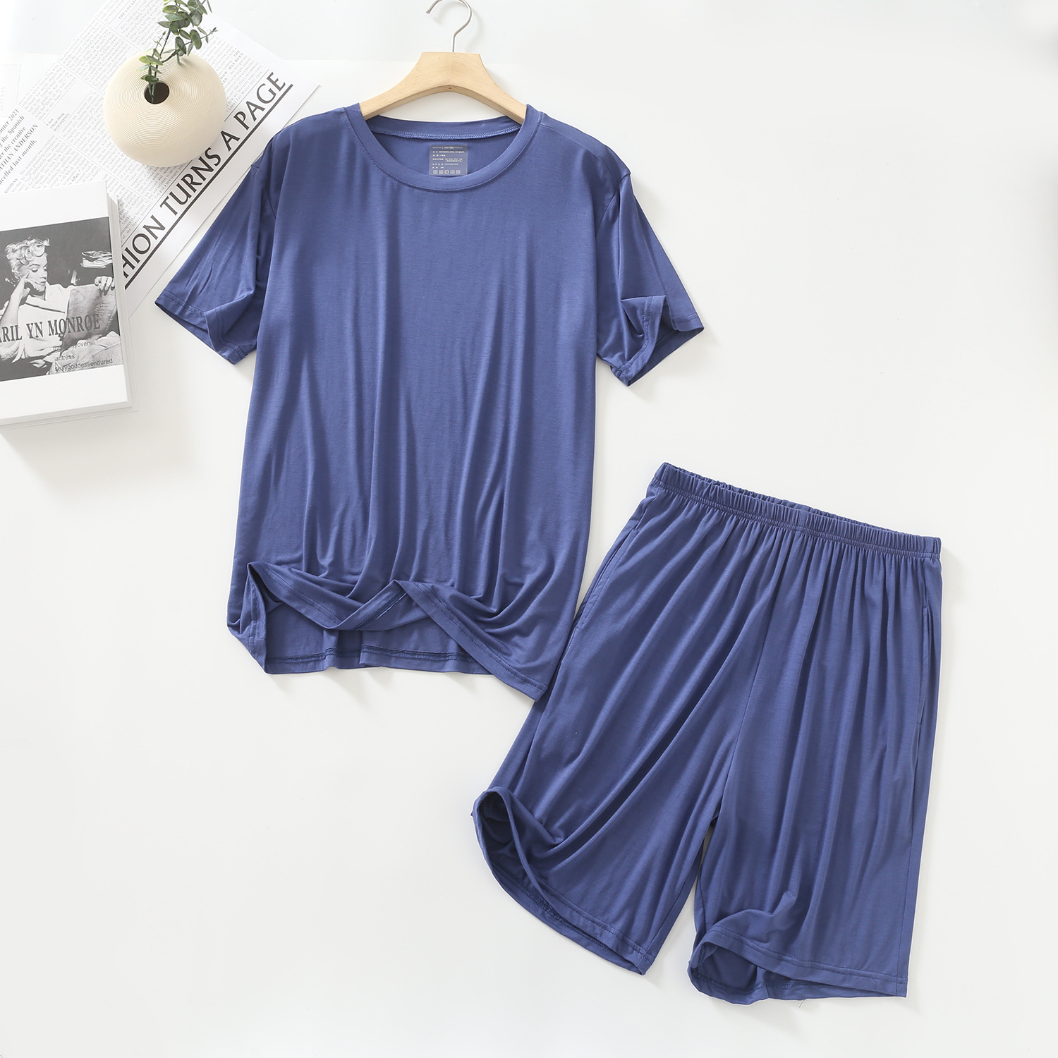 여름 잠옷 남자의 모달 얇은 반팔 반바지 캐주얼 플러스 사이즈 투피스 세트 남자의 가정복 세트