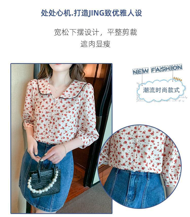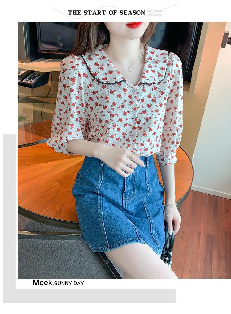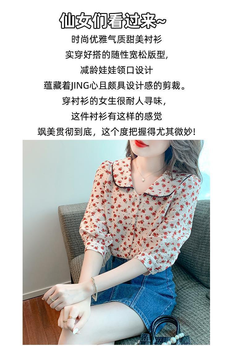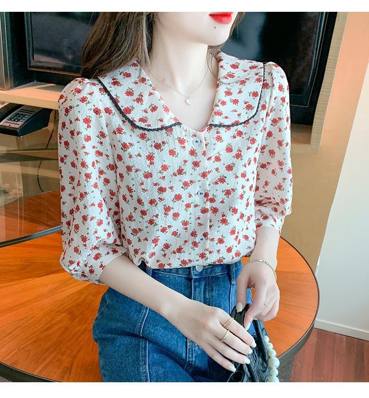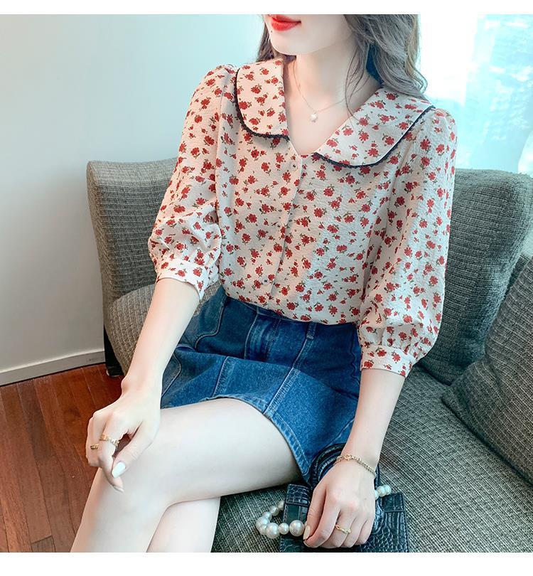 7 점 소매 프랑스 복고풍 쉬폰 셔츠 여성 2023 여름 새로운 인형 칼라 느슨한 얇은 기질 셔츠