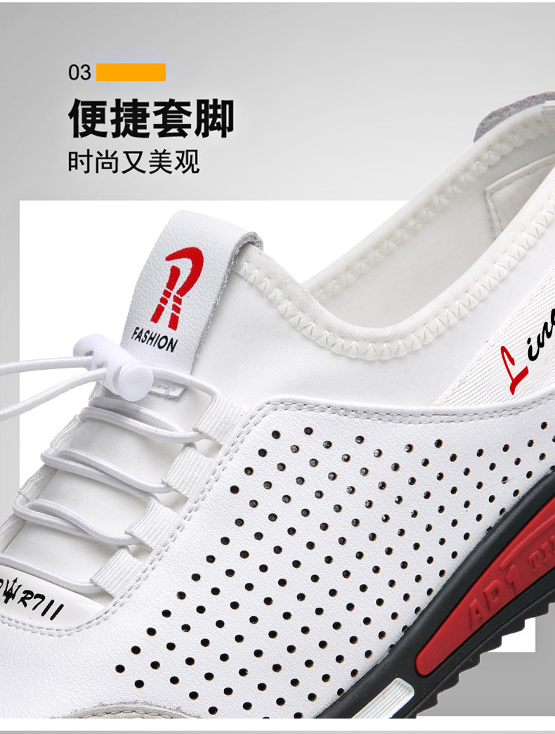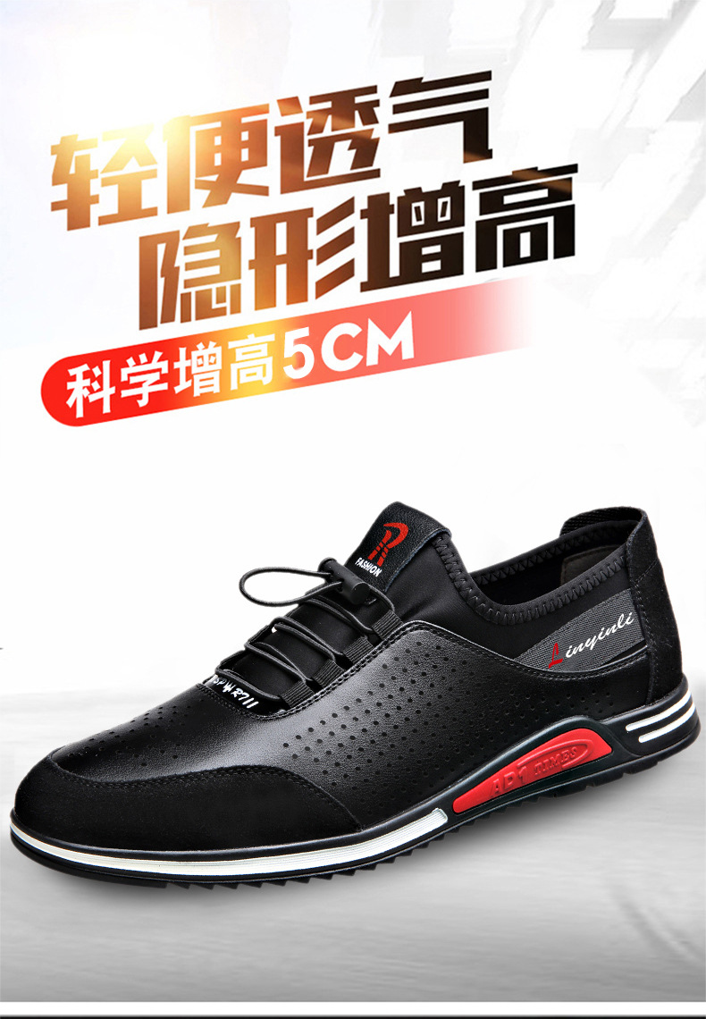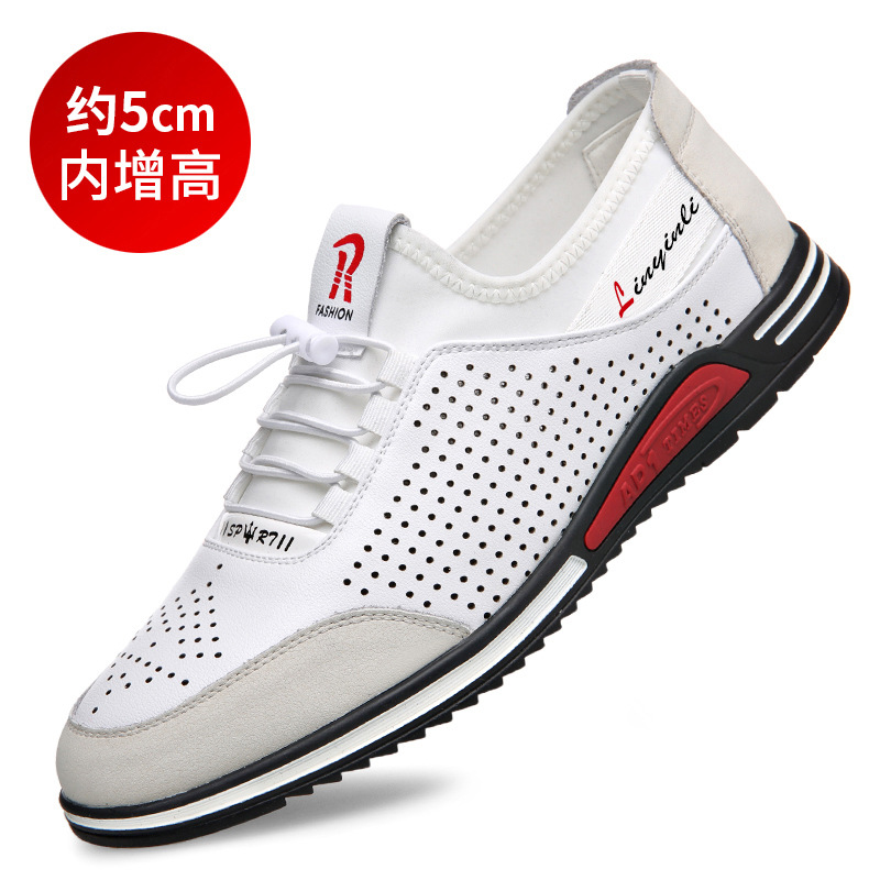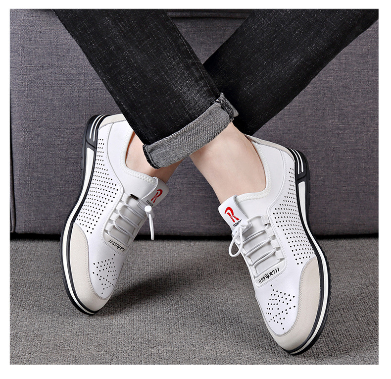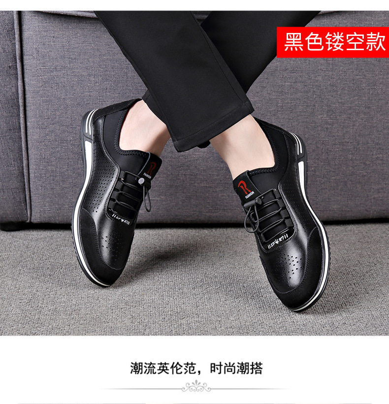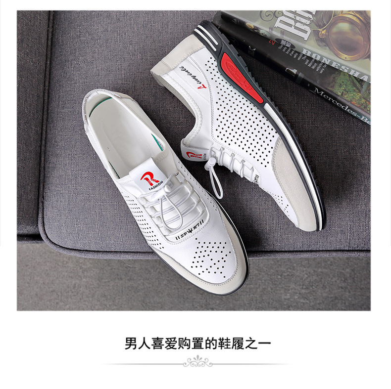 가죽 신발 남성 소가죽 증가 남성 신발 중공 통기성 스포츠 캐주얼 신발 부드러운 바닥 통기성 조수 신발 머리카락 세대