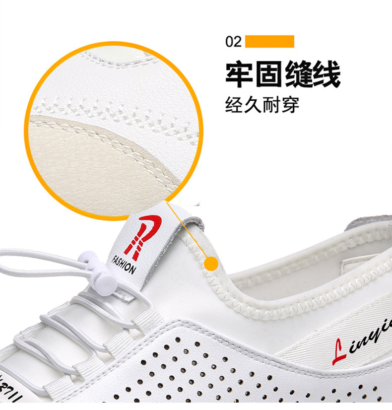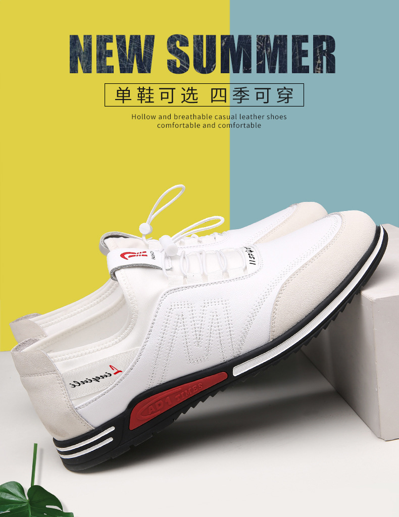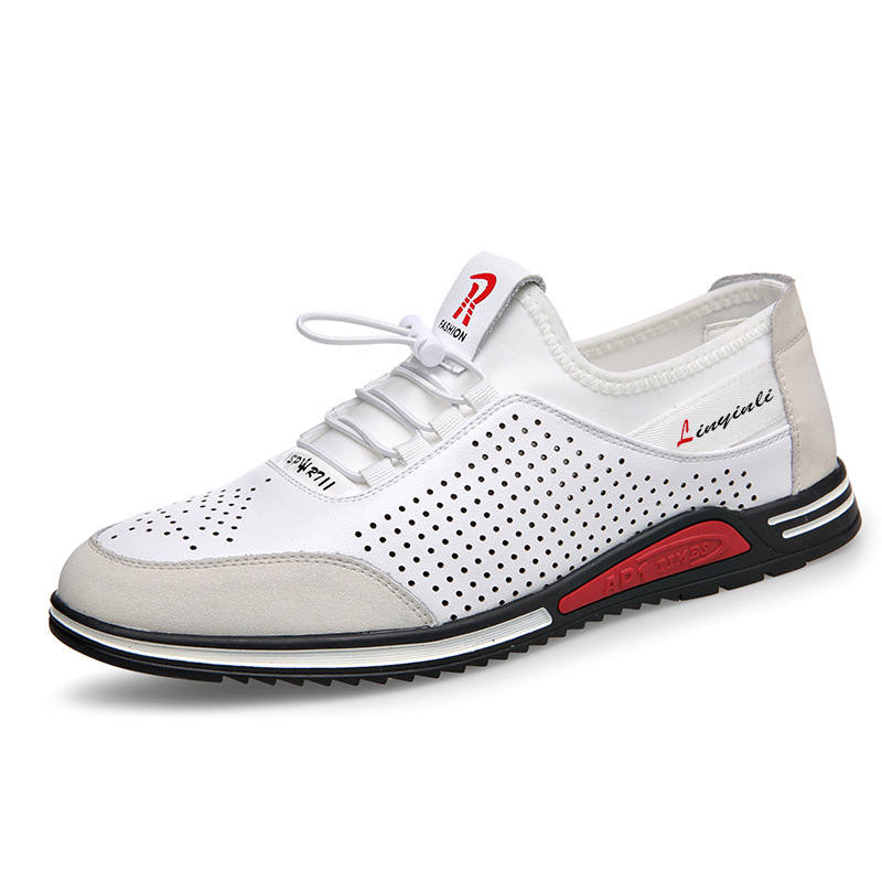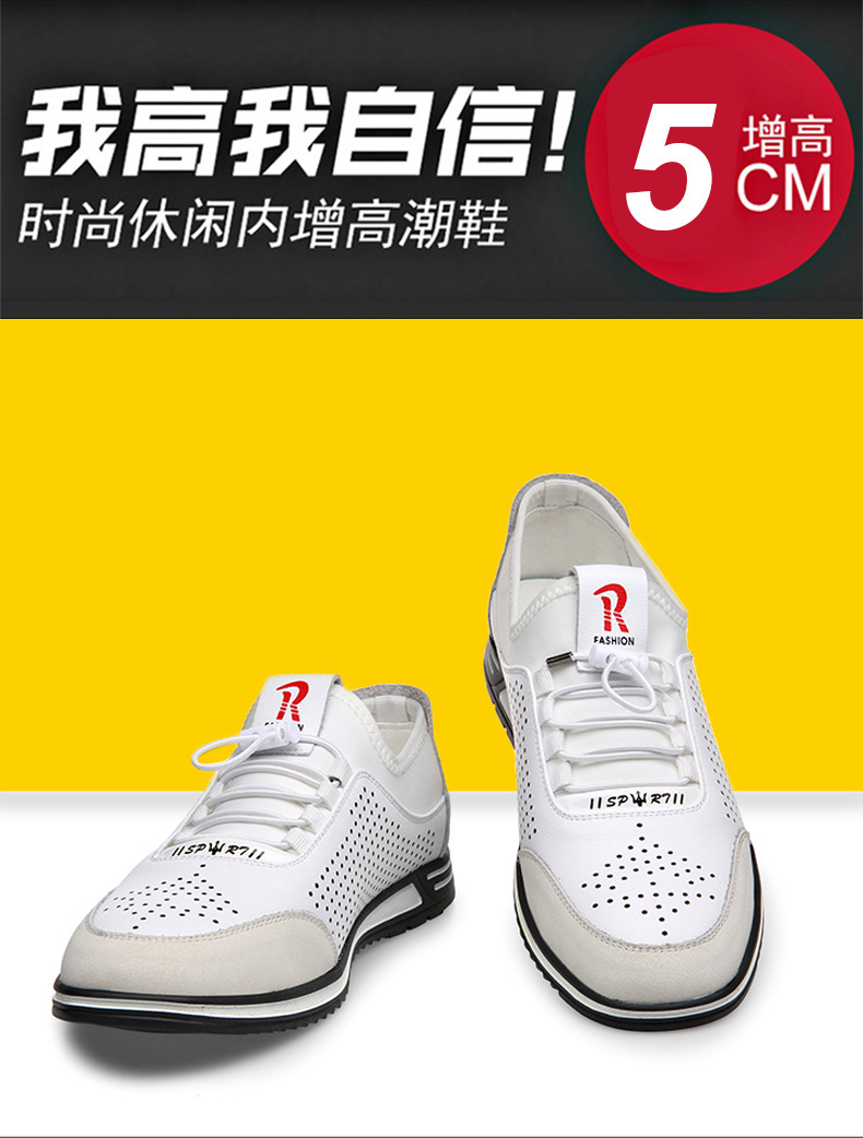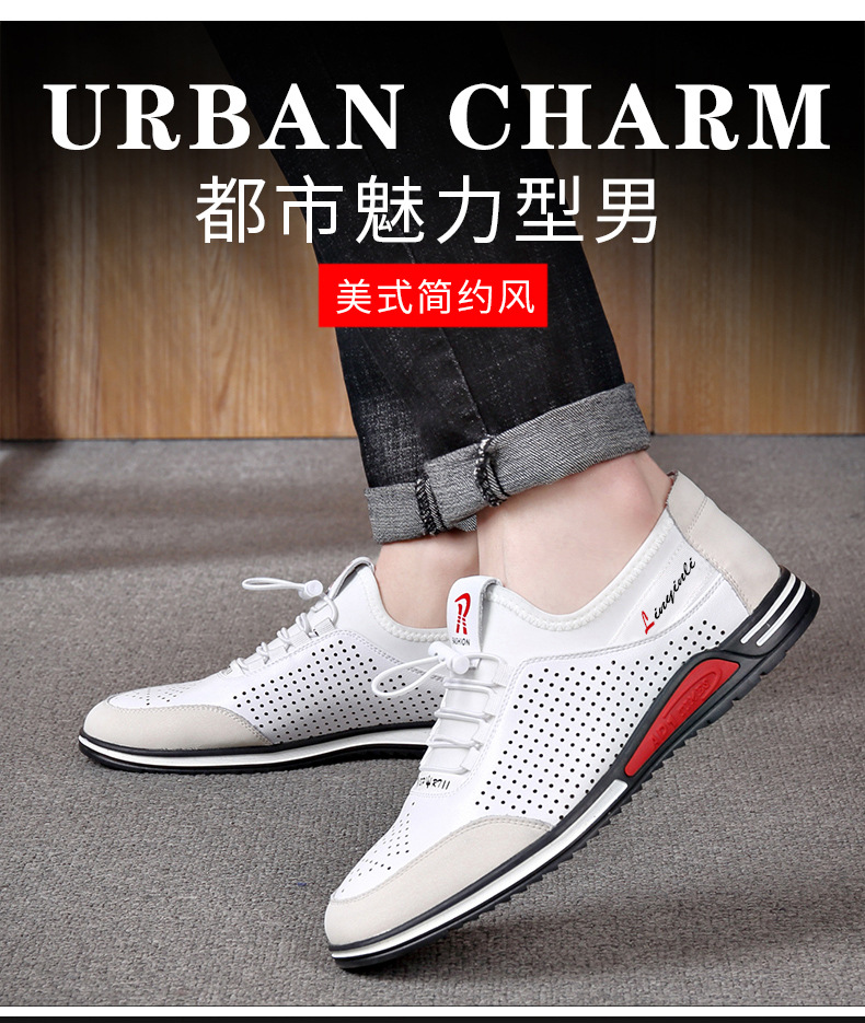 가죽 신발 남성 소가죽 증가 남성 신발 중공 통기성 스포츠 캐주얼 신발 부드러운 바닥 통기성 조수 신발 머리카락 세대