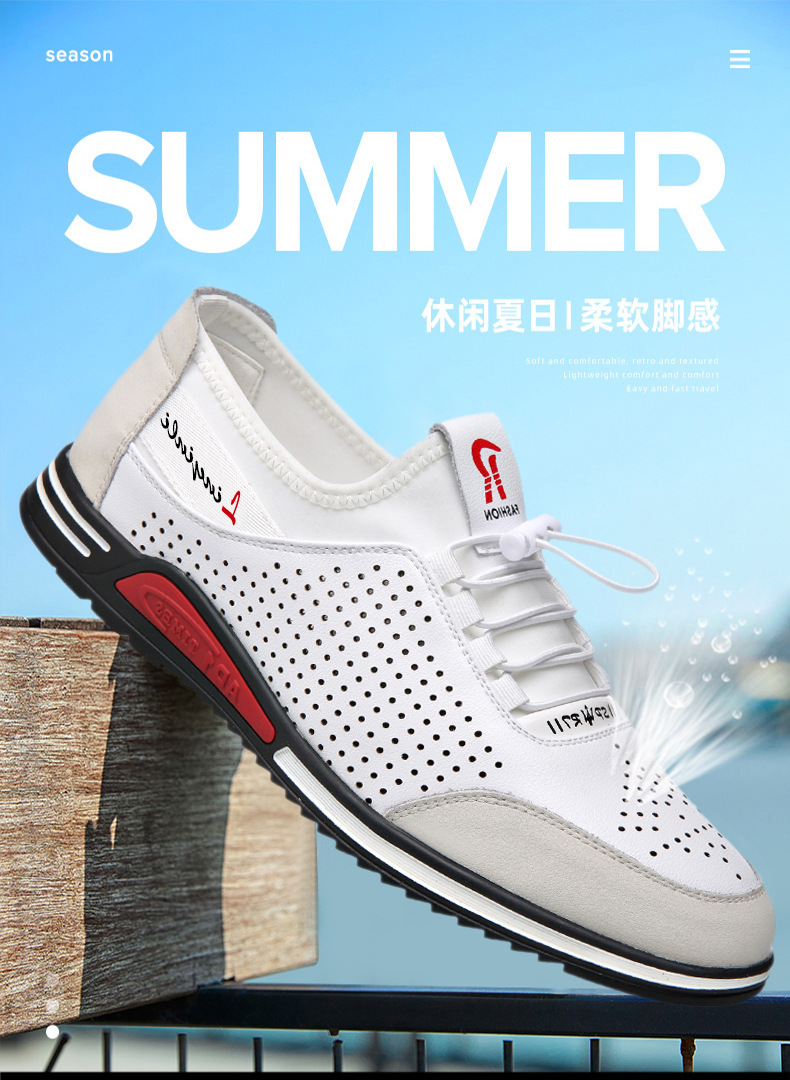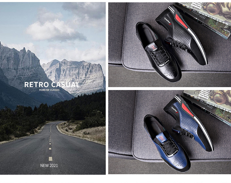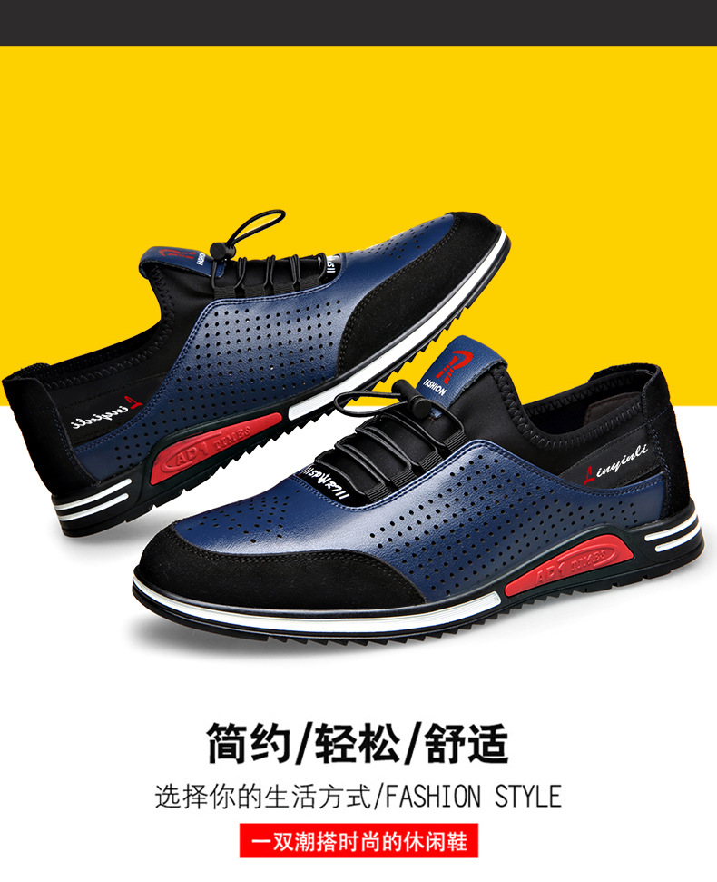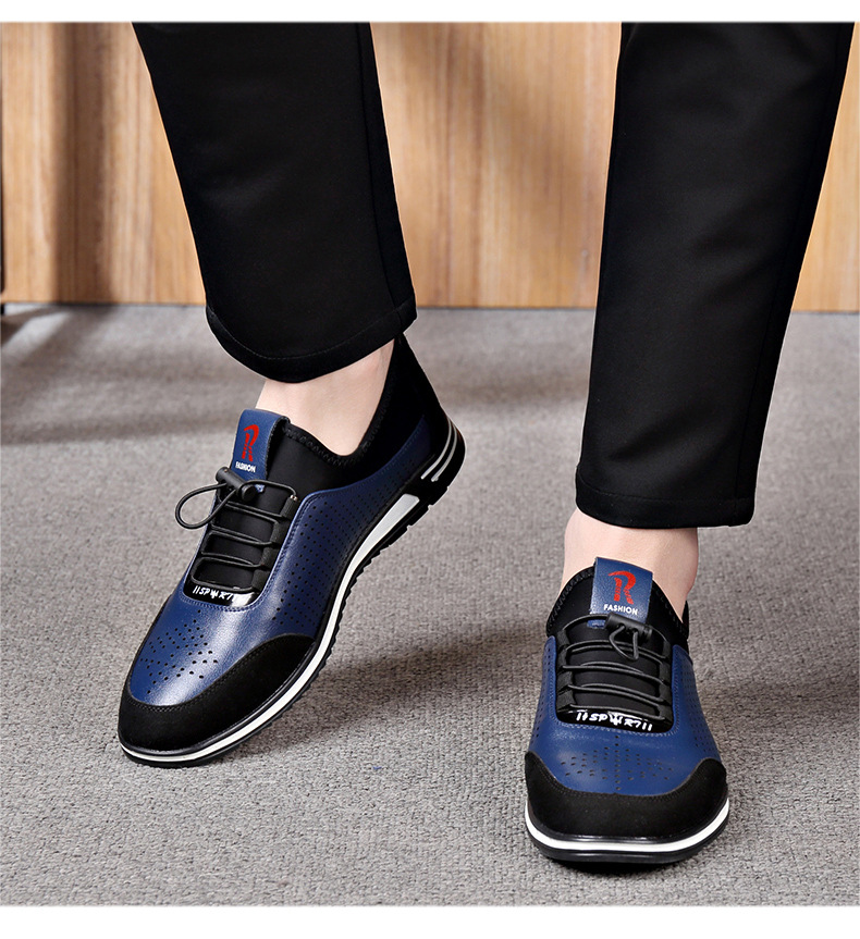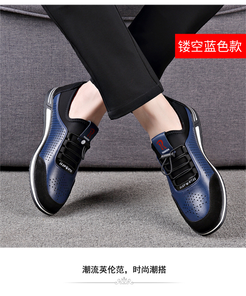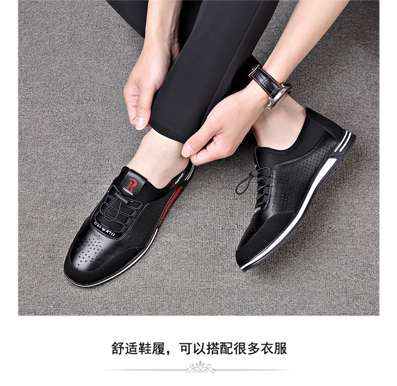 가죽 신발 남성 소가죽 증가 남성 신발 중공 통기성 스포츠 캐주얼 신발 부드러운 바닥 통기성 조수 신발 머리카락 세대스토어 가기
