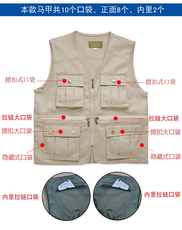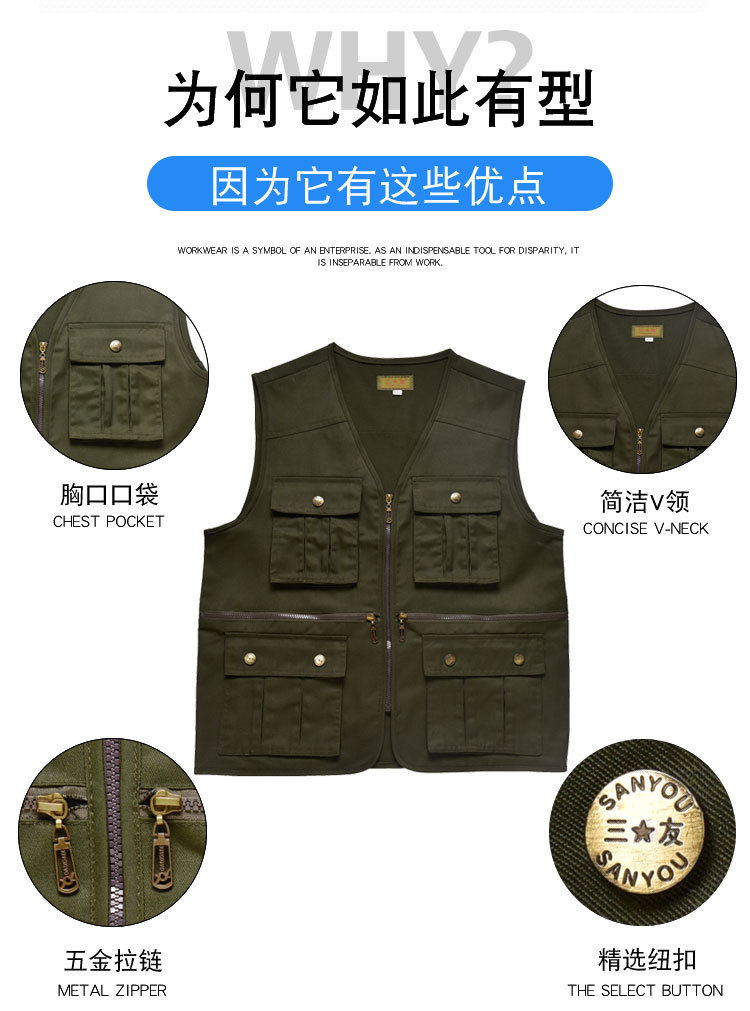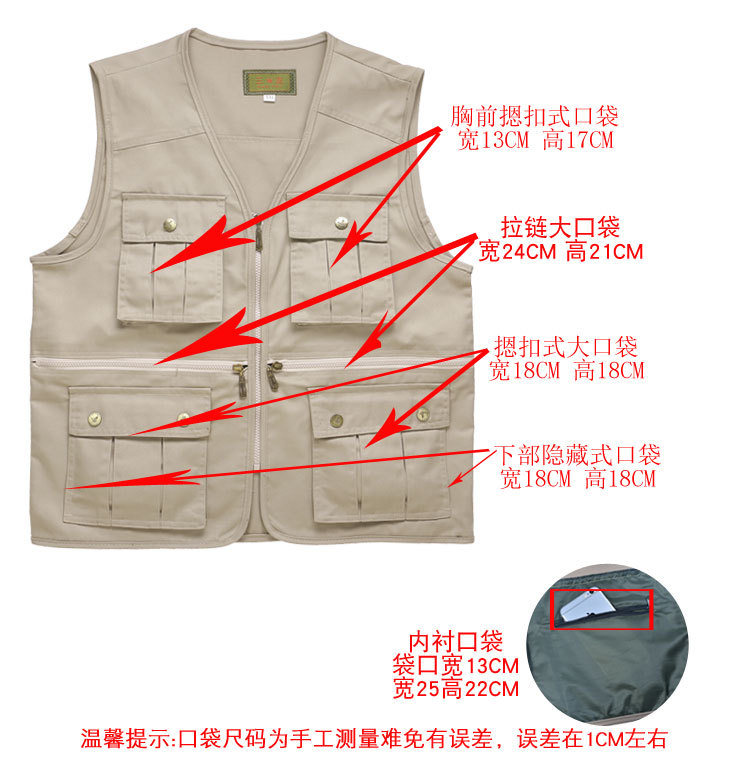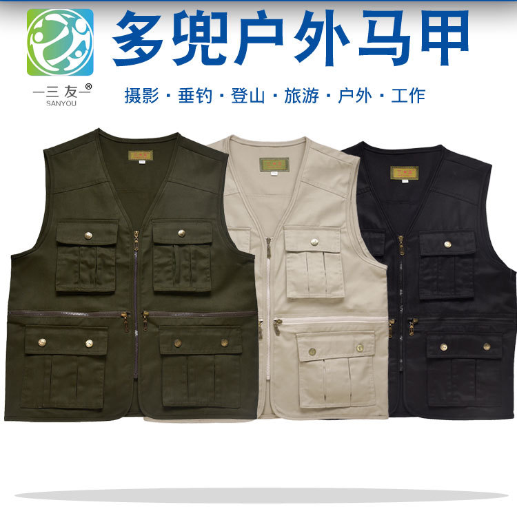봄과 가을 야외 멀티 포켓 조끼 남성용 기능성 조끼 중년 및 노인 낚시 사진 등산 조끼 세 친구 크로스 보더스토어 가기