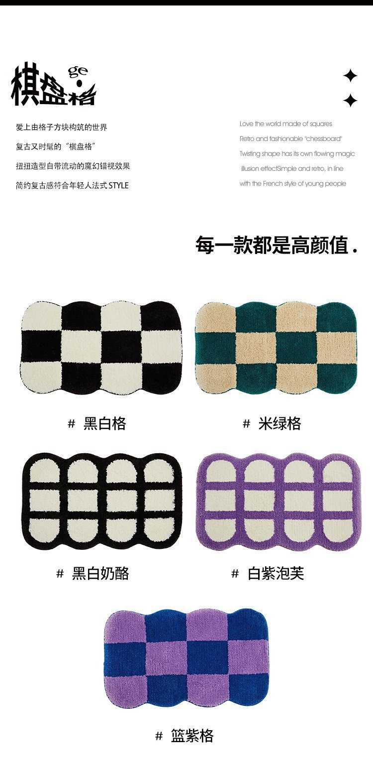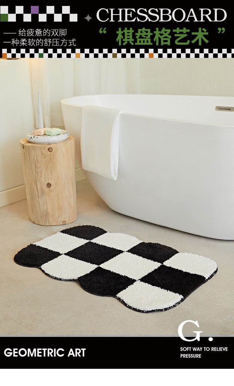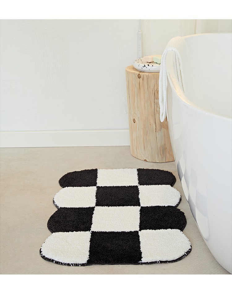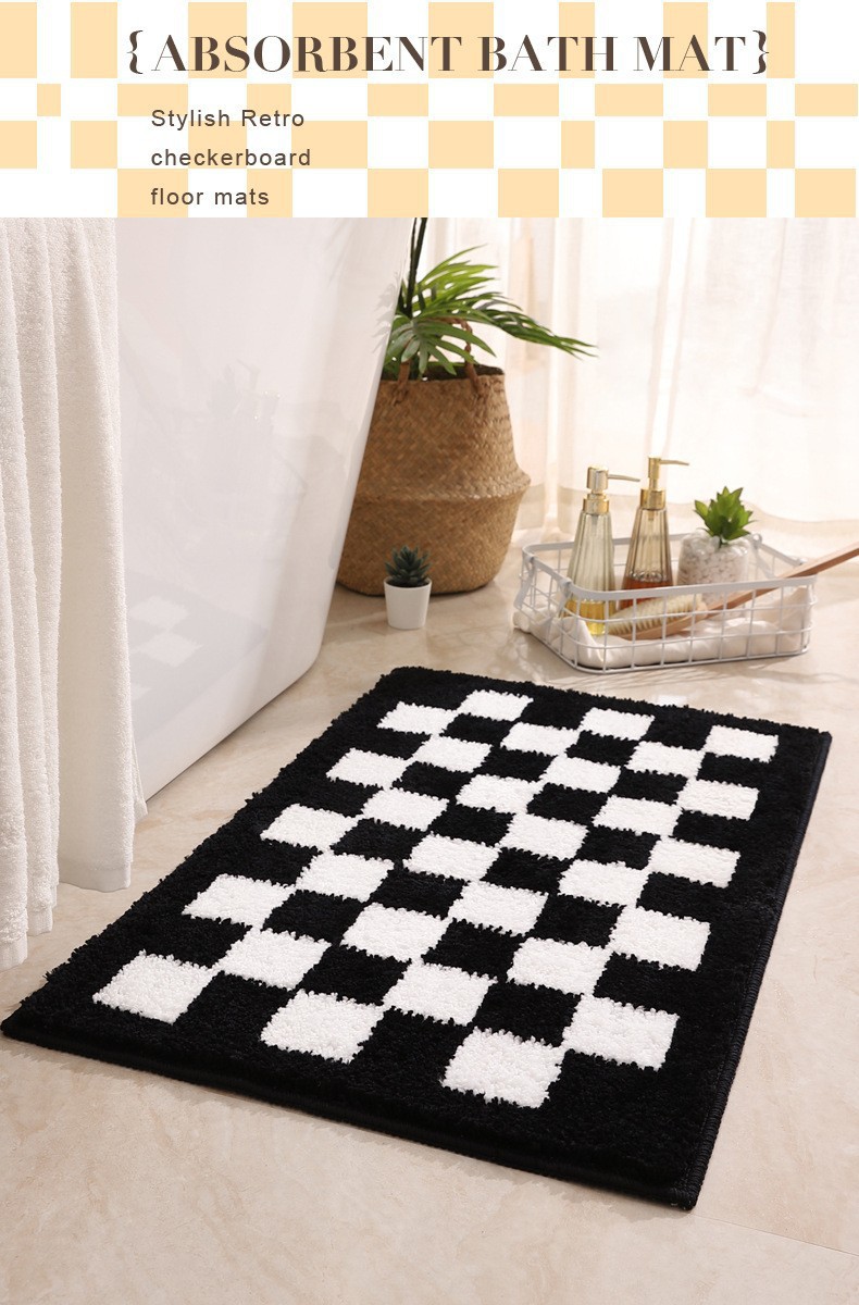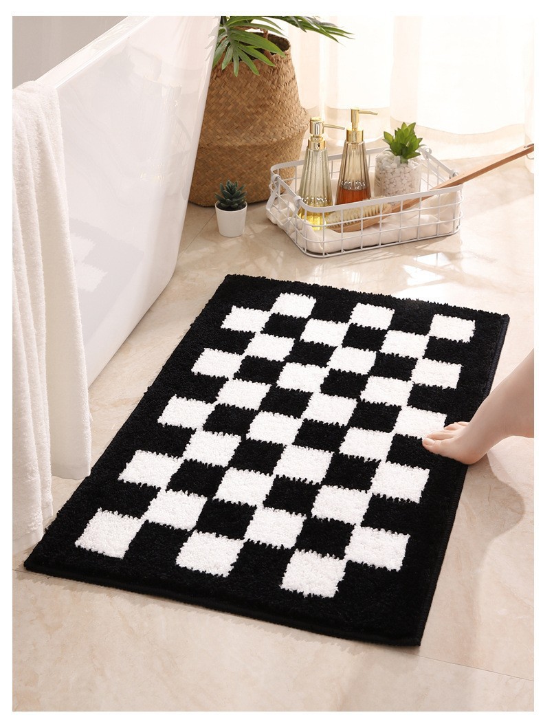 바둑판 욕실 속건 바닥 매트 욕실 문 미끄럼 방지 흡수 발 매트 가정용 침실 문 플로킹 카펫스토어 가기