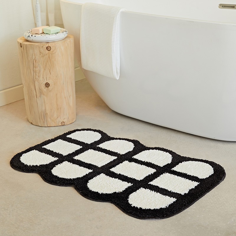 바둑판 욕실 속건 바닥 매트 욕실 문 미끄럼 방지 흡수 발 매트 가정용 침실 문 플로킹 카펫