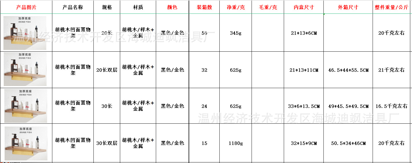• 못질 불필요 - 월넛 골드 - 40CM 오목형 선반