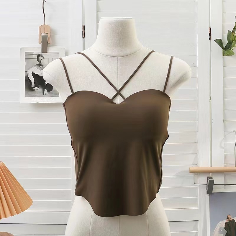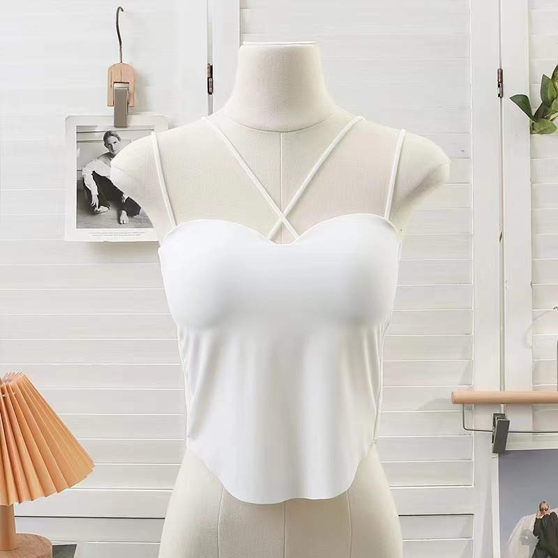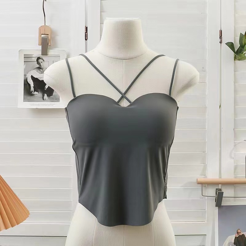 아이스 실크 스포츠 캐미솔 여성용 여름 디자인 감각 틈새 복장 바닥 아름다운 등 슬림핏 짧은 핫 걸 탑스토어 가기