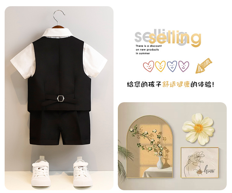 어린이 세트 세트 소년 봄과 여름 반팔 조끼 꽃 어린이 의류 1 년 생일 어린이 세트 피아노 의상