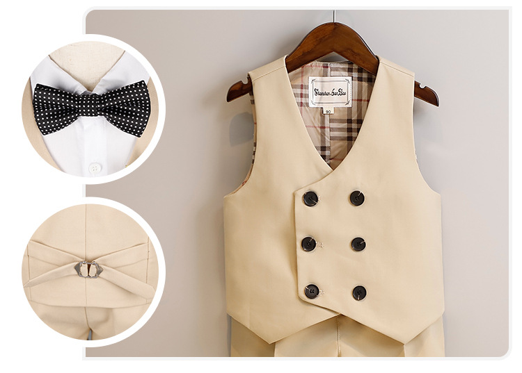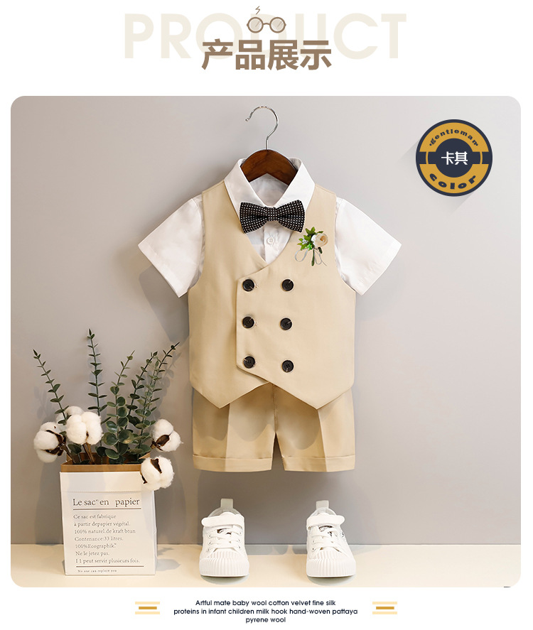 • 카키 5 종 세트 (조끼 + 반바지 + 반팔 셔츠 + 코사지 + 나비 넥타이)